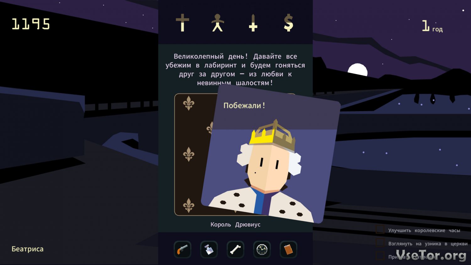 В остальном же это все та же аркадная игрушка, в которой вас ждет море юмора, интересные события, рандомно меняющийся сюжет, и колоритные персонажи. Сыграйте за королеву и постарайтесь удержать трон под собой, принимайте решения и постарайтесь поменьше ошибаться… У нас вы можете скачать Reigns Her Majesty торрент последнюю версию бесплатно на компьютер.