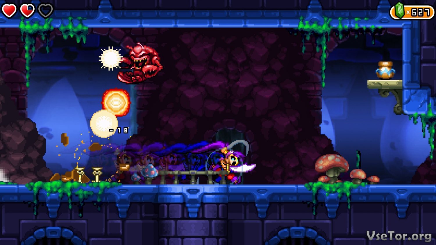 Что до игрового процесса, так он в Shantae and the Pirate's Curse довольно прост и базируется на традиционных для жанра процессах и механиках. То есть, вы будете проходить многочисленные локации и уровни, сражаться с противниками. собирать бонусы и различные предметы, выполнять несложные, но интересные задания, и делать многое другое.