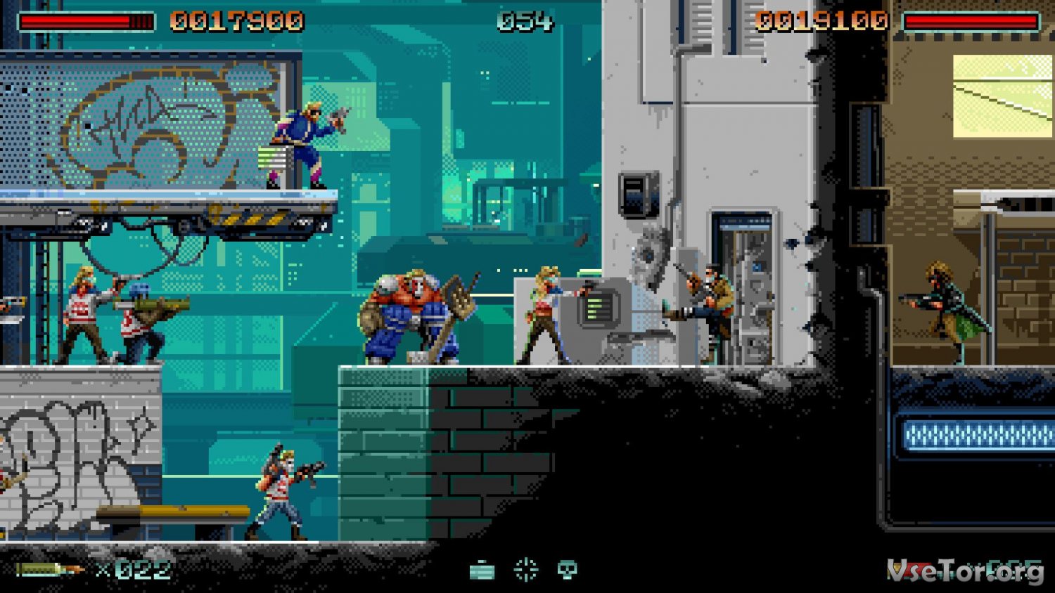 Что до боев в HUNTDOWN, так они реально эпичны. Тут вам и толпы обычных противников, давящих непосредственно «мясом», и боссы, от ударов которых персонаж улетает в край экрана, и ловушки, и взрывы, и пулеметные очереди, и повсеместные разрушения. И не вздумайте прятаться за преградами от пуль, ведь в этой игре все разрушается. Воюйте с умом, сражайтесь тактично, и помните, в этой игре нет баланса – есть только безумие и самый настоящий хардкор. У нас вы можете скачать HUNTDOWN торрент последнюю версию бесплатно на компьютер.