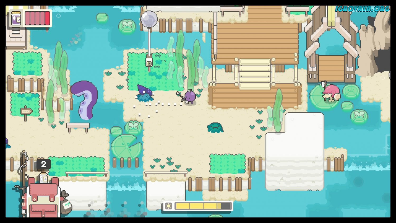 Что касается игрового процесса, так он в Garden Story основывается в первую очередь на исследовании окружающего мира и выполнении заданий. Вы будете исследовать огромный двухмерный частично открытый мир, знакомиться с разнообразными персонажами, выполнять задания и поручения, которые вам будут давать разные NPC, переполняющие этот мир, и делать многое-многое другое.