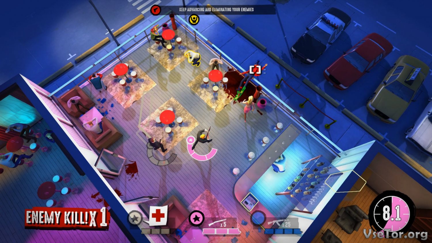 В остальном же Reservoir Dogs: Bloody Days, это типичный шутер с видом сверху. Вам придется вступать в перестрелки с охранниками и полицией, планировать ограбления, покупать оружие и снаряжение для своих персонажей, развивать их и делать многое другое. А еще вас ждет огромное количество заданий, уникальные истории каждого из персонажей, и не только. Попробуйте спланировать все как полагается и отыграть роль героев легендарного фильма… У нас вы можете скачать Reservoir Dogs: Bloody Days торрент последнюю версию бесплатно на компьютер.