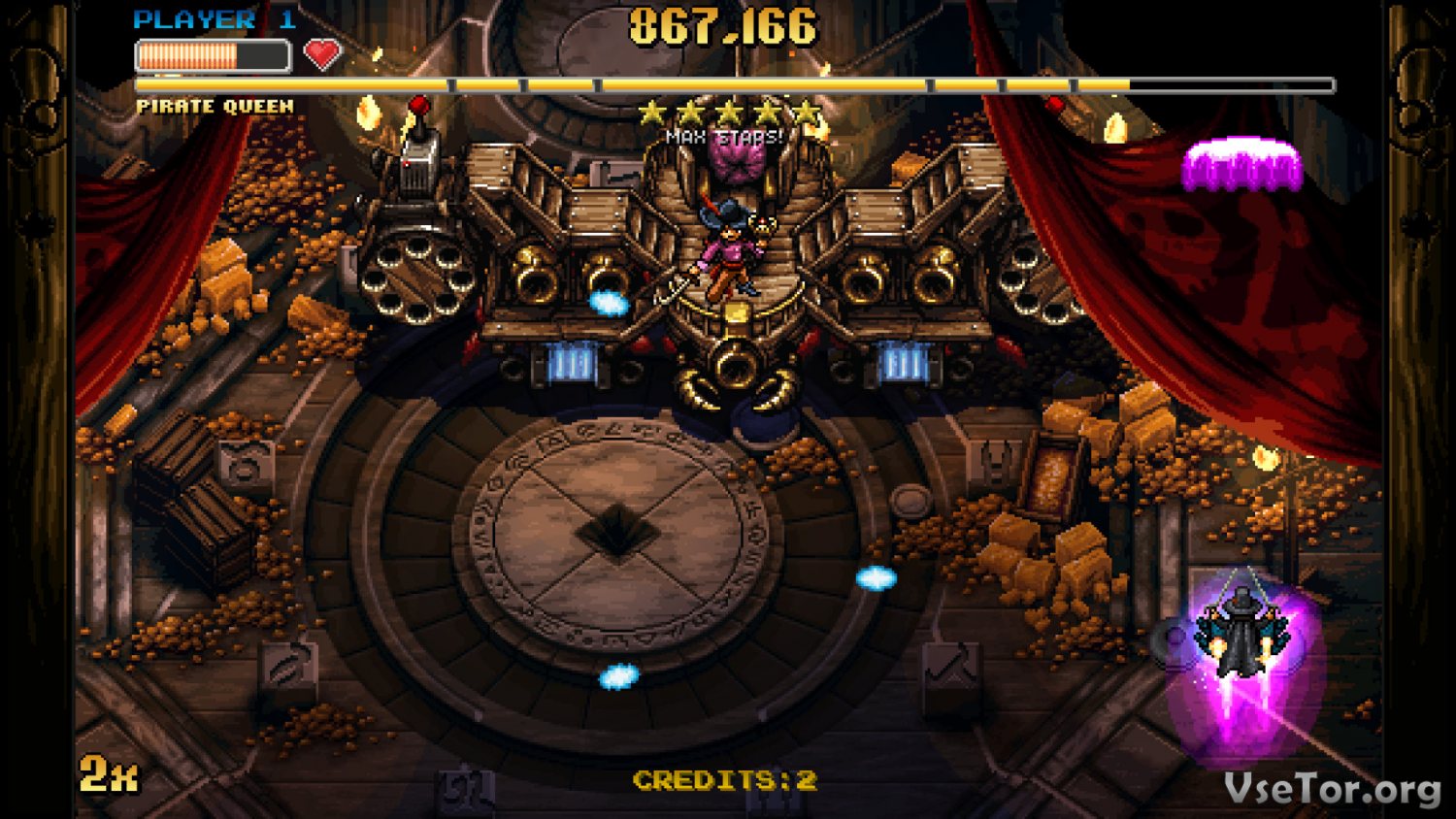 Есть в Jamestown+ и система прокачки, но она нестандартна по своей сути. Звездолет и его орудия можно улучшать, но в большинстве случаев на начале новых уровней происходит откат, если не полный, то частичный. А во время прохождения уровня можно модернизировать пушки, подбирая бонусы и выпадающие их врагов предметы. например, в ходе прохождения уровня у вас может измениться цвет орудия и вместе с ним урон, появиться новая способность (например, пускать огромные взрывающиеся шары), и не только…