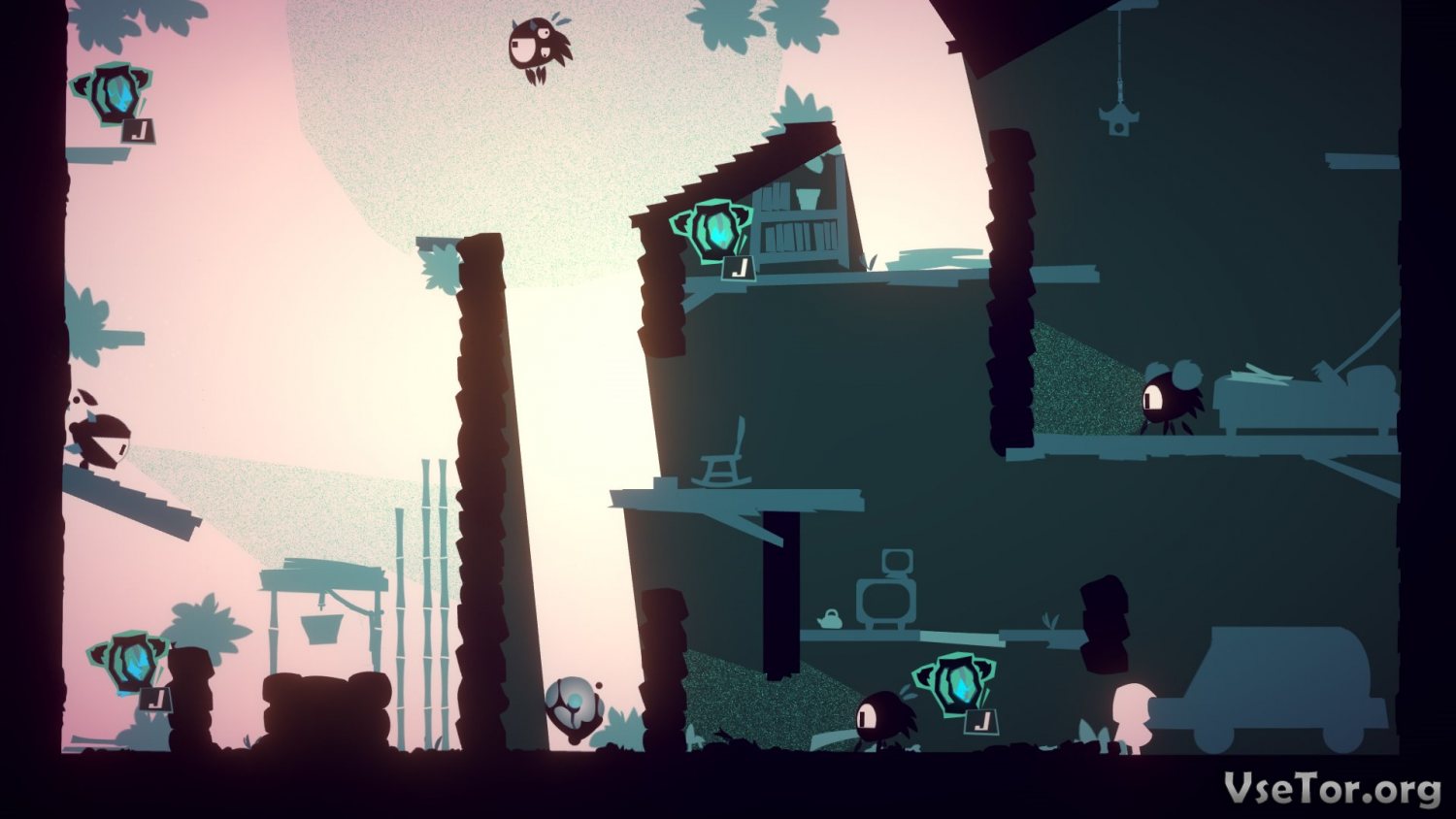 Не менее важно и то, что сами арены в Shadow Brawlers разрушаются и меняются прямо по ходу битвы. некоторые стены пробиваются, предметы могут швыряться во врага, сам ниндзя может быстро в тени перемещаться по арене, оставаясь незамеченным какое-то время. Причем, на каждой арене обязательно есть сектор, оформленный в цвете одного из участников бойни – этот цвет и является тенью, в которой может спрятаться соответствующий герой.