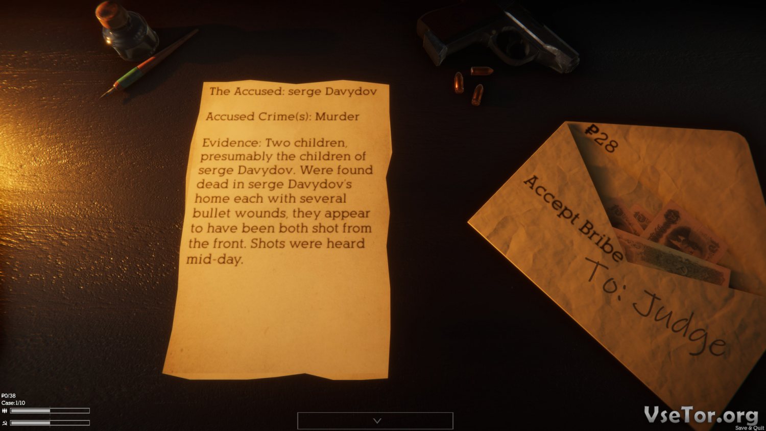 Но имейте ввиду, что здесь все ваши решения и действия будут иметь последствия. Например, взяв взятку на глазах у охранника. вы рискуете получить от него пулю в лоб, или посадив не того, кого нужно, вы можете оказаться за решеткой. И таких вариантов развития событий более, чем предостаточно. Будьте осторожны, внимательно принимайте решения и не совершайте ошибок. У нас вы можете скачать Blind Justice торрент последнюю версию бесплатно на компьютер.