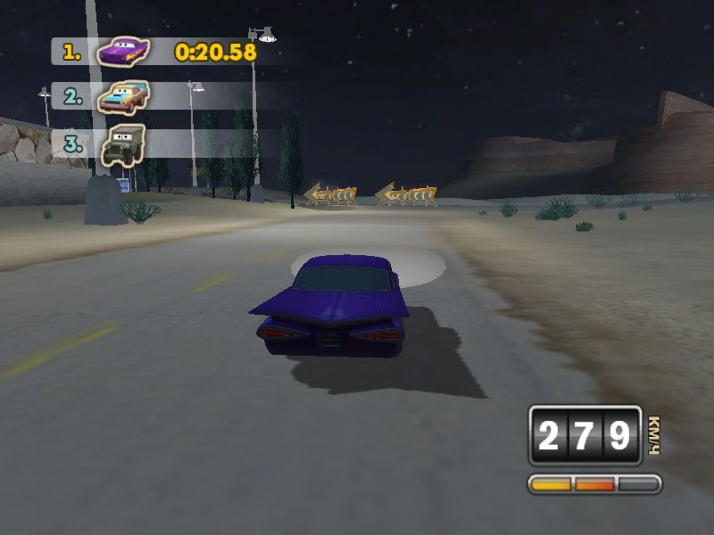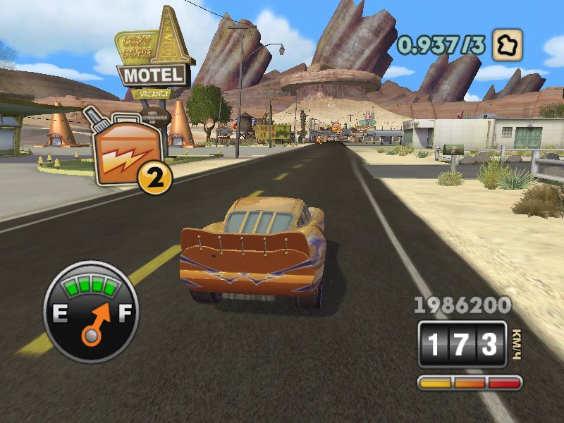 Игровой процесс тут довольно прост и базируется на самых простых механиках. Взять даже сами гонки – тут нет реалистичности ни в системе заносов, ни в самих гонках, и все основывается на упрощенной модели управления. Но даже при этой простоте игра впечатляет, как минимум атмосферой. Гонки на больших скоростях, скоростные заезды по маршрутам, что были продемонстрированы в одноименном мультфильме, диалоги с многочисленными персонажами, знакомыми всем без исключения, шутки и юмор, прекрасное музыкальное сопровождение – все это создает атмосферу, в которой ненароком начинаешь думать, что попал в мультик, а не в игру.