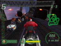 Игровой процесс в целом достаточно прост и основывается на типичных для жанра механиках. Выбираете персонажа, отправляйтесь на гоночный трек, и стартуете с соперниками. Все просто, но есть и несколько интересных факторов. Первый и самый главный заключается в том, что гонять в этой игре можно за разных персонажей. В вашем распоряжении будет почти с десяток персонажей. уникальных, показанных в свое время даже в одноименном клипе. Причем, каждый персонаж уникален не только в плане внешности, но также и в транспортном средстве, и в характеристиках. А второй фактор заключается в наличии гоночных бонусов, которые вы сможете собирать прямо по ходу гонок. На каждом треке имеются пиктограммы с бонусами, которые дают ту или иную способность. Это может быть ловушка для соперника, ускоритель, усиленный движок или еще что-нибудь в этом роде. Всего около двух десятков возможных бонусов.