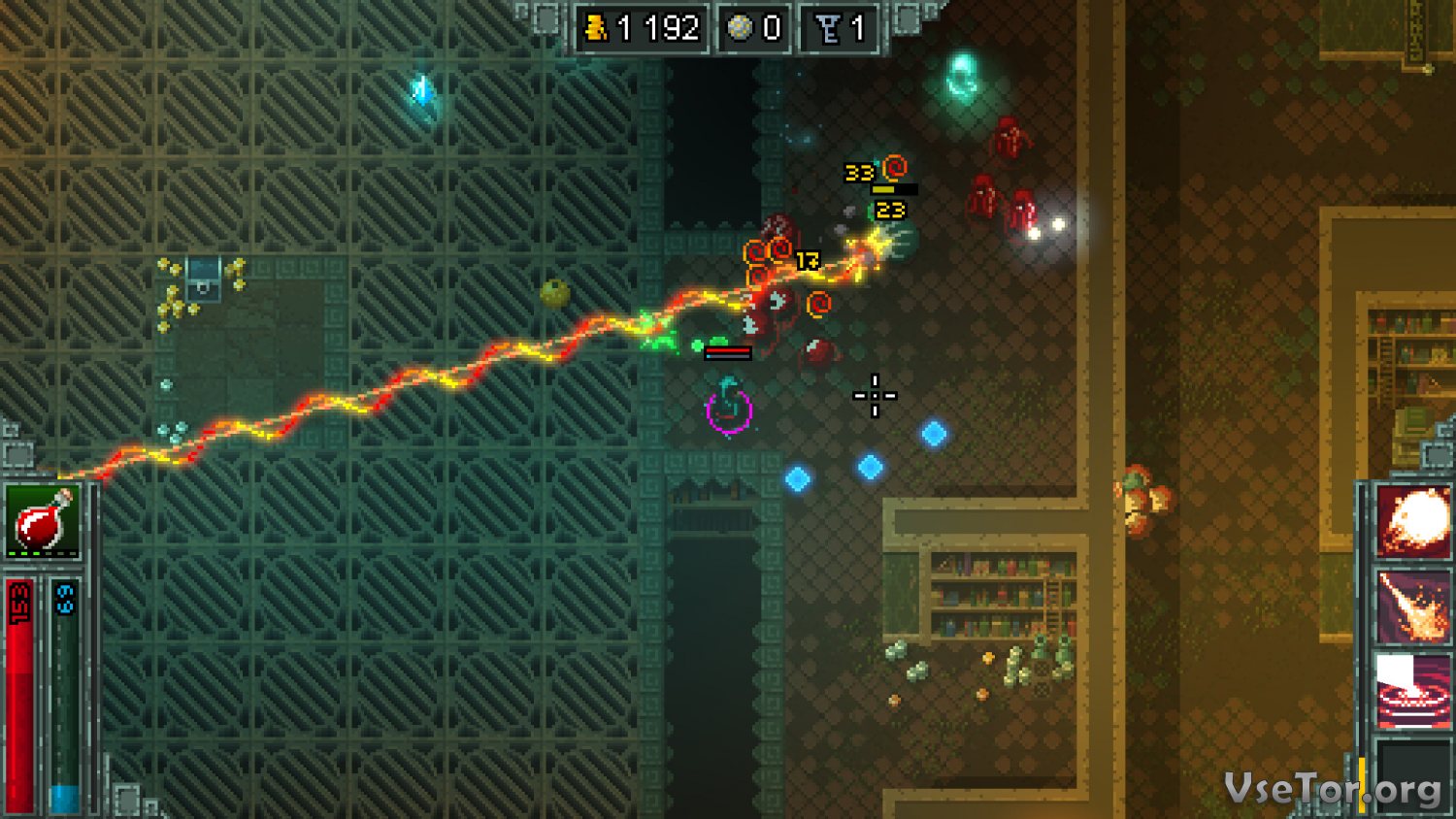 Кстати, в игре предусмотрена перманентная смерть персонажа. Но погибнув, вы сможете продолжить прокачку, потеряв лишь накопленные предметы. Ну а если отправитесь в приключение с друзьями, смертей будет в разы меньше… У нас вы можете скачать Heroes of Hammerwatch торрент последнюю версию бесплатно на компьютер.