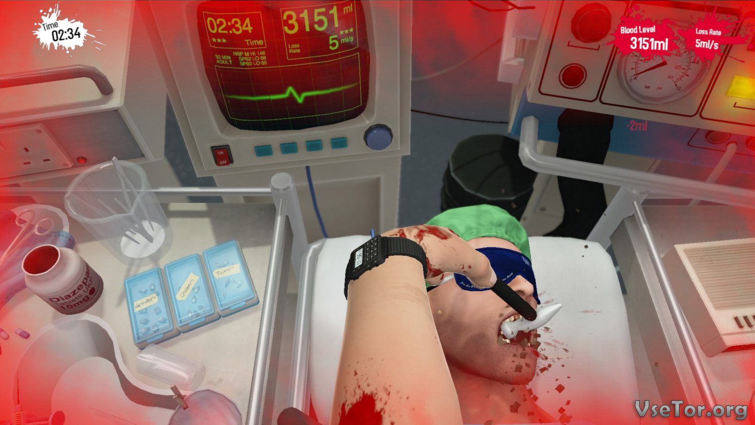 Игровой процесс тут довольно сложен и предлагает не просто симуляцию, а огромное количество механик, от которых вы точно будете в восторге. Но в первую очередь стоило бы сказать о том, что здесь вам предстоит научиться использовать руки хирурга, главного героя, что не так уж и просто. Лишь одно неправильное движение, и все, вы порезали артерию, или уронили орган на пол. Вариантов таких вот фатальных ошибок предостаточно, и случиться может все, что угодно.