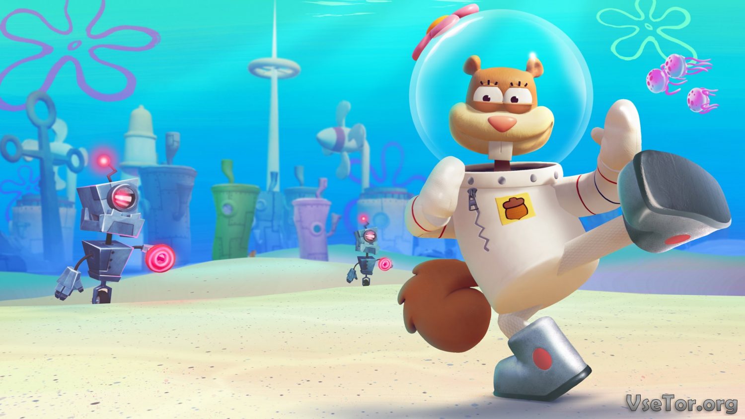 А еще в данном ремейке вас ждет огромное количество новых возможностей, встроенный игровой режим на двоих игроков, обновленная графика и детализированные текстуры, и еще более яркое окружение. Отправляйтесь в Бикини-Боттом, сразитесь с роботами и огромными медузами, защитите городок и просто повеселитесь, сыграв роль безумного Губки Боба. У нас вы можете скачать SpongeBob SquarePants Battle for Bikini Bottom - Rehydrated торрент последнюю версию бесплатно на компьютер.