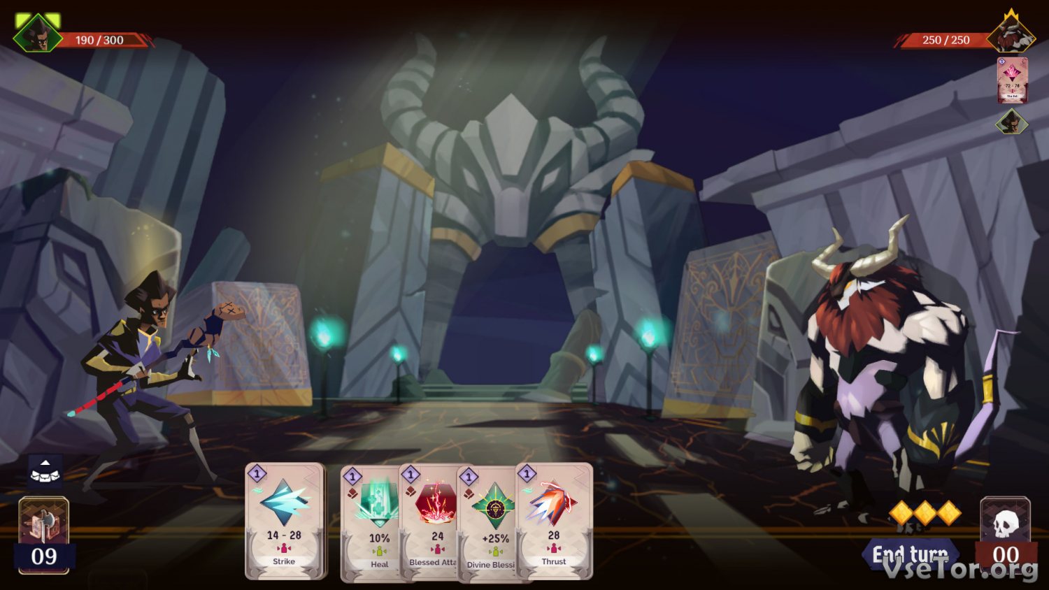 Также, в основе игрового процесса в A Long Way Down лежит еще и карточная механика. По ходу приключения вы сможете собрать уникальную колоду карт. Каждая карта тут может означать что-то свое – одна позволит вам более активно и эффективно исследовать подземелье, другая предоставит возможность в сражении использовать уникальную магию или способность, а третья и вовсе даст вам некое пассивное преимущество. Вариантов много…