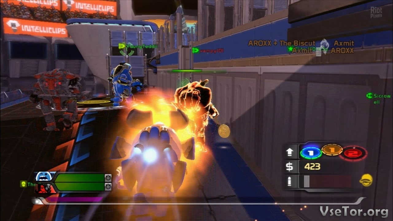 Конечно, есть у этой игры и несколько важных «изюминок», и в их роли выступают два уникальных режима. Первый режим игры получил название «Блиц» и предлагает окунуться с головой в зрелищные бои за шар с деньгами, за которым охотятся прущие напролом роботы. Ваша задача. оборонять шар, делая все возможное для того, чтоб роботы не разрушили тот самый шар. Противостоять можно, как живым игрокам, так и противникам под управлением искусственного интеллекта. Карт для этого режима немного, но зато сама игра в этом режиме точно восхитит вас. Второй же режим предполагает практически то же самое, но тут уже придется не только оборонять свой шар с деньгами, но также и атаковать вражеский.