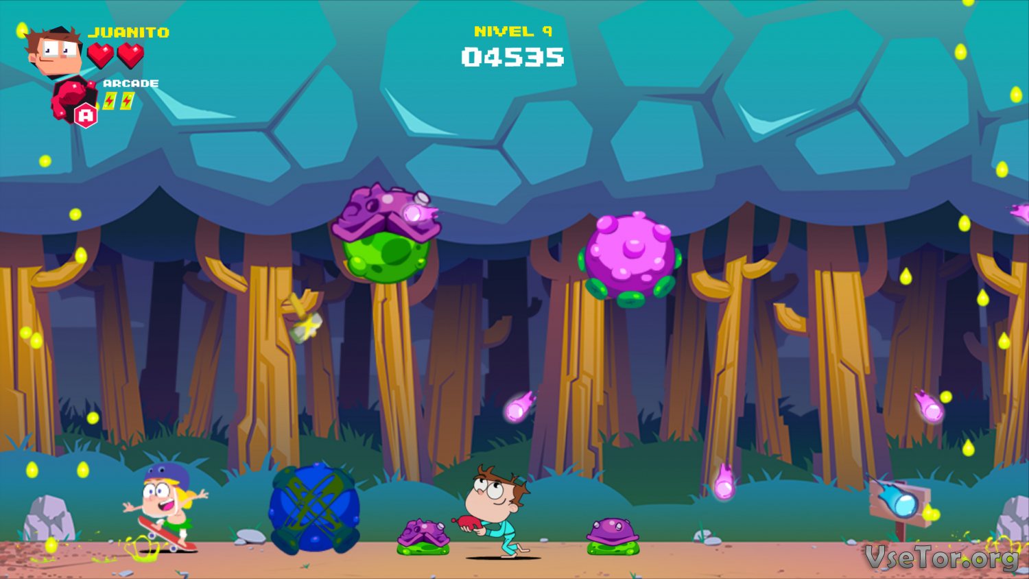 События игры начинают происходить в тот самый момент, когда инопланетяне начинают нападать на нашу планету. И никто не смог оказать им должное сопротивление, кроме паренька по имени Хуанито. Правда, воевать ему приходится не в реальности, а внутри игрового автомата. Его задача – защитить ретро-аркаду, которую хочет уничтожить инопланетный вирус. В общем, хватайте Хуанито, его крутой мощный бластер, любимую пижаму, и отправляйтесь в бой. И не думайте, что будет легко. Поверьте, это испытание вы уж точно запомните очень и очень надолго.
