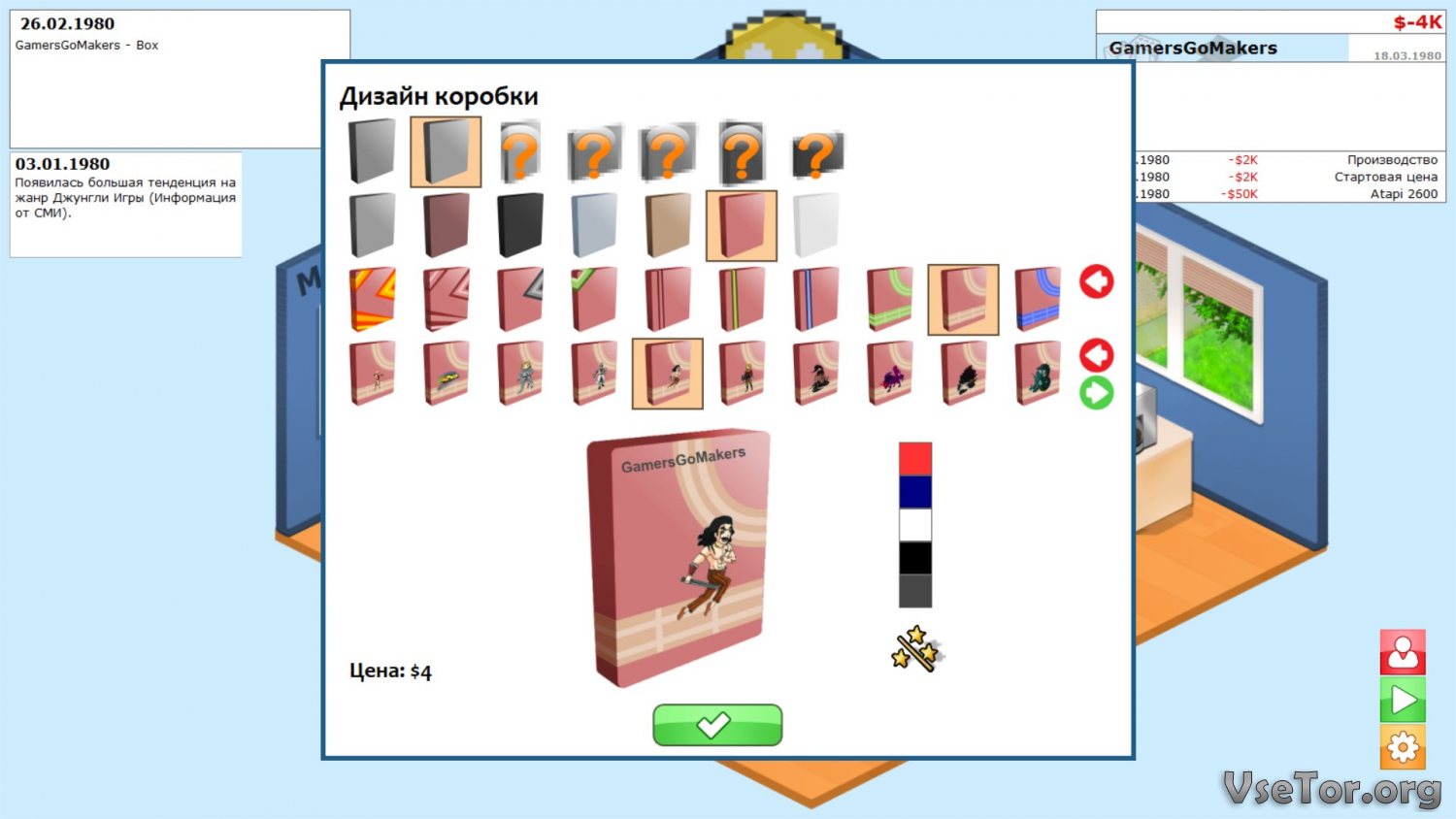 Начинается же все в этой игре с 1980-ого года, в период, когда игры только лишь начали появляться. Вы начнете с маленького офиса и самостоятельной работы, штат вашей компании будет состоять из вас одного, а игры будут существовать только в одном виде – в одном единственном жанре. Ну а дальше вам нужно будет развиваться. Причем, на процесс развития игровой индустрии вы будете влиять самостоятельно, своими действиями, решениями, играми, и не только…