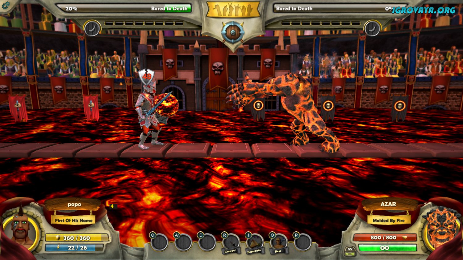 И вот, вы на арене – вас ждут динамичные и очень интересные пошаговые сражения, в которых вы будете сражаться с самыми сильными воинами вселенной. Сначала вашими противниками будут обычные новобранцы, но позже, когда в ваших руках появится огромный меч, а характеристики значительно возрастут, против вас будут выставлять самых сильных бойцов. Думаете легко будет их одолеть? Что ж, попробуйте…