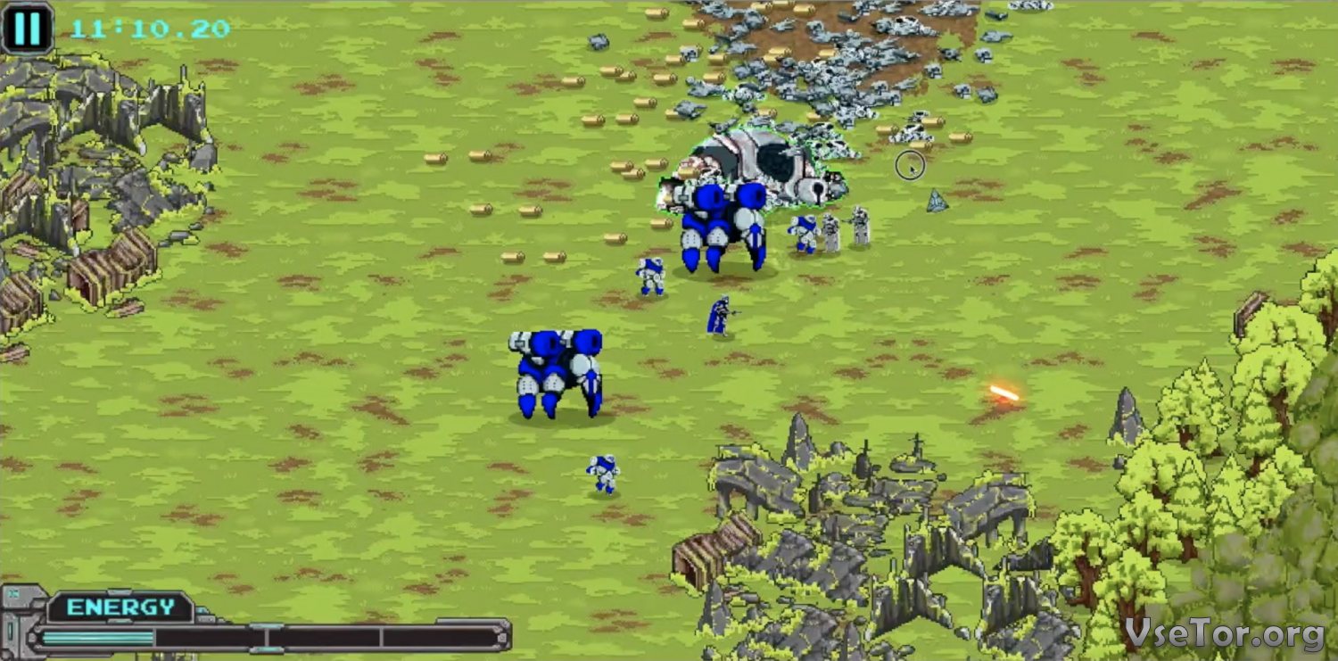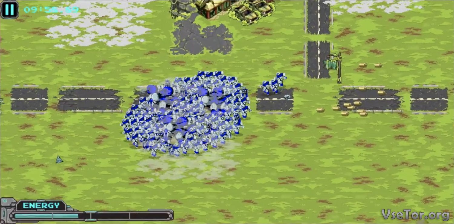 Что касается геймплея, так он в этой игре уникален по всем направлениям без исключения, хотя и предлагает довольно простую формулу. Вы будете управлять в самом начале небольшой армией роботов, не слишком сильных, но способных победить относительно сильного противника, напав на него толпой. Вместе с этими роботами вы должны будете передвигаться по карте к цели, заглядывать в разные руины и на засекреченные локации, сражаться с противниками и идти вперед. Ничего сложного тут нет, но есть один прекрасный момент – дело в том, что ваша армия по ходу прохождения игры будет расти в объеме за счет убитых вами врагов. Каждый убитый вами враг может быть воскрешен и добавлен к общей численности вашей собственной армии. Так, в конце концов вы будете управлять уже огромным количеством роботов, которые будут действовать как один единый организм.