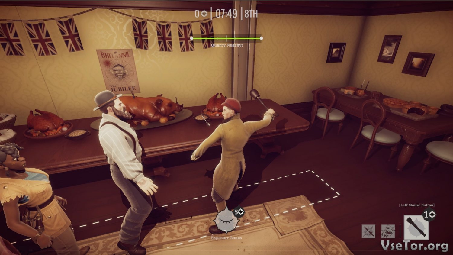В целом же игровой процесс тут довольно прост. В Murderous Pursuits весь геймплей основывается на стелсе. Суть в следующем – попав в матч, вы должны незаметно передвигаться среди обычных пассажиров, подстраиваться под общую атмосферу, выслеживать жертв, и незаметно устранять их таким образом, чтоб вас не обнаружила охрана. Все просто, но и очень интересно…