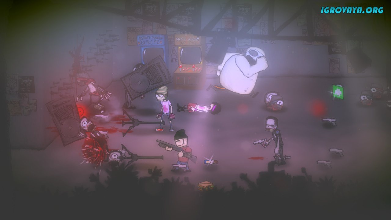 Отдельно же стоило бы сказать о разнообразии вооружений. В вашем распоряжении будут по началу лишь ножи с дубинками и другое холодное оружие, но уже через некоторое время в ваших руках окажется дробовик, пистолет, или еще что-нибудь куда более крутое. А еще вы сможете по ходу прохождения Charlie Murder обзавестись и огромным количеством снаряжения, одежды, амулетов, татуировок, головных уборов и многого другого. Каждая вещь по-своему уникальна и наделит вашего героя какими-нибудь бонусами. А в остальном это типичных двухмерный экшен с зомби. Сражайтесь, проходите многочисленные уровни, веселитесь, крошите врагов и коллекционируйте лут, а главное, уничтожьте конкурентов из другой группы… У нас вы можете скачать Charlie Murder торрент последнюю версию бесплатно на компьютер.