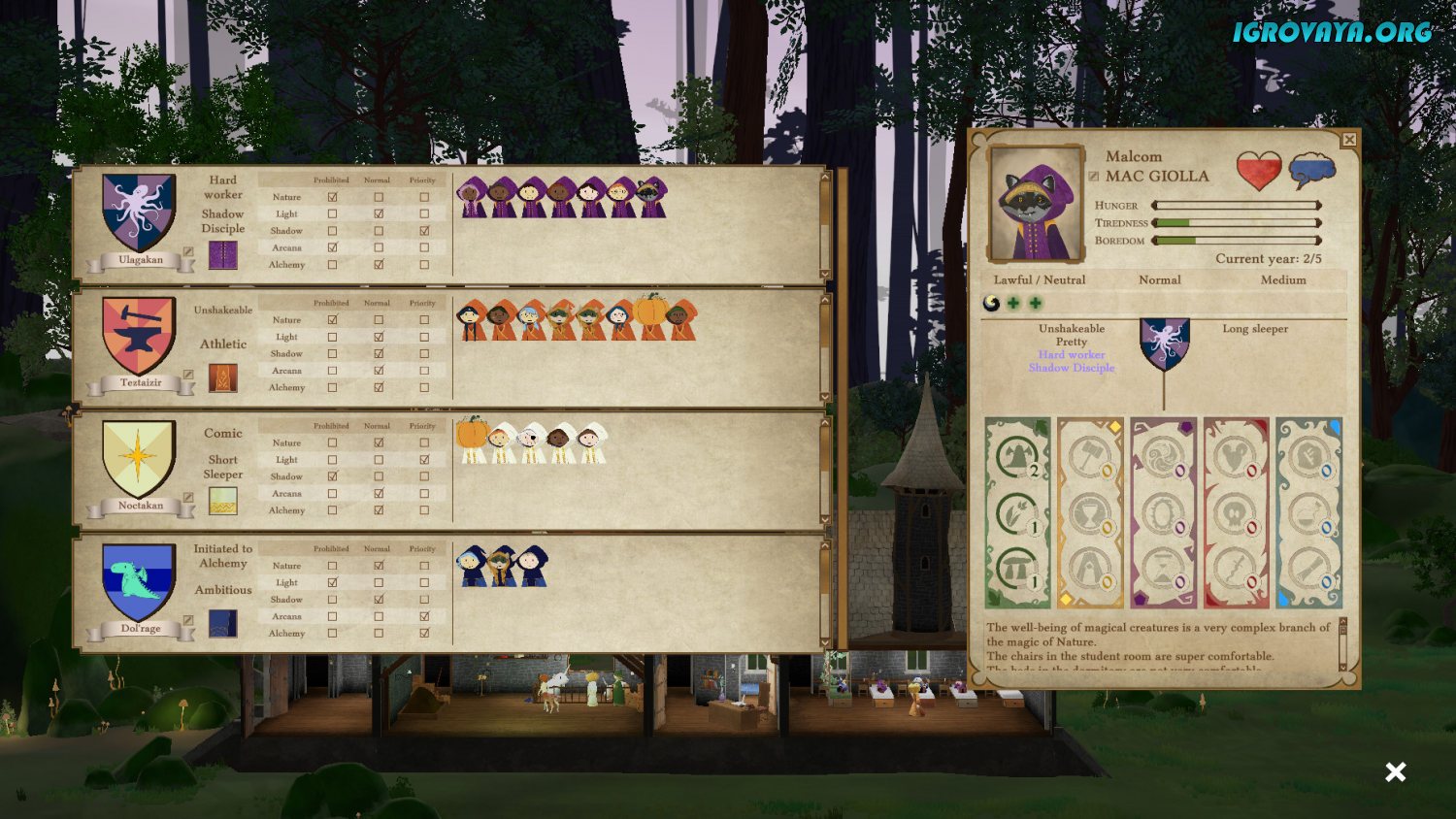 Естественно, вам придется определиться еще и с направлением работы школы. В Spellcaster University вам будет предложено несколько направлений. Например, вы сможете создать школу темной магии, в которой преподавателями будут лучшие некроманты этого фэнтезийного мира, и из которой будут выпускаться будущие представители сил Зла. Но также вы сможете обучать и белой магии, создавая таким образом друидов и целителей.