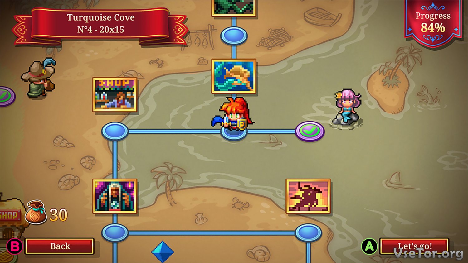 А еще попутно вам придется между уровнями заглядывать в магазины, к примеру, покупать на заработанные на уровнях деньги зелья и артефакты, которые можно использовать в головоломках, и общаться с разными персонажами игры. У нас вы можете скачать PictoQuest торрент последнюю версию бесплатно на компьютер.