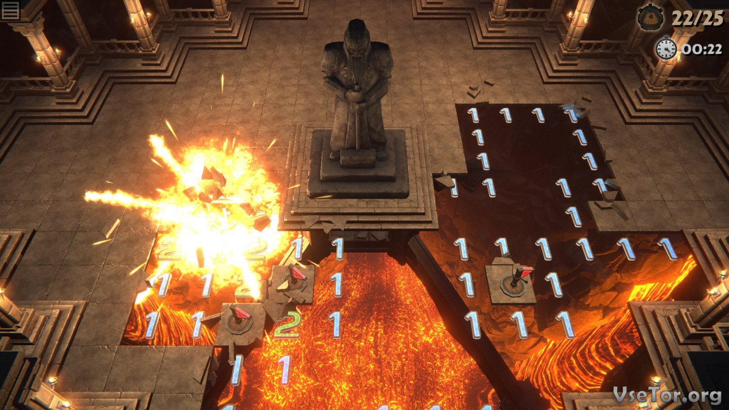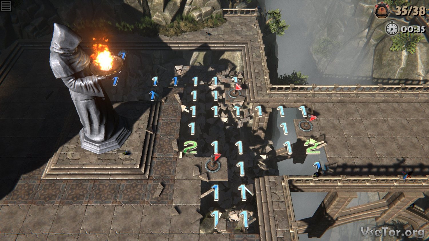 Ну а первым делом стоило бы сказать о том, что в этой версии легендарной игры в сапера разработчики задействовать полноценную трехмерную графику, благодаря чему все происходящее на экране смотрится в разы лучше. например, взять даже плиточный пол в соборе, где плитки просто рассыпаются на части и падают в бездну. На словах звучит это довольно просто, но на деле выглядит этот процесс круче некуда.