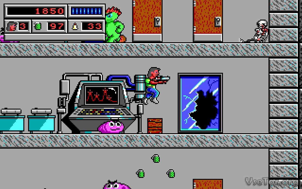 Ну и конечно же, в Bio Menace своим разнообразием поражают и сами уровни. Вам придется преодолевать линии тока и кислотные ямы на протяжении 12 уровней, пробираться сквозь обвалы, биться с мутантами и монстрами, прыгать по платформам, и выживать. В общем, будет интересно и весело… У нас вы можете скачать Bio Menace торрент последнюю версию бесплатно на компьютер.