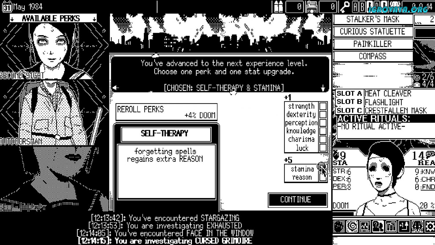 Что до игрового процесса, так он в этой игре по большей части основывается на принятии многочисленных решений. Во время прохождения игры вы будете то и дело сталкиваться с разными событиями, которые так или иначе будут влиять на окружающий вас мир и главного героя. А еще вам придется сражаться с некоторыми обезображенными персонажами, принимая решения об использовании оружия и атаках. Правда, самих как таковых боев вы тут не увидите. Но как бы там не было, а играть будет интересно… У нас вы можете скачать WORLD OF HORROR торрент последнюю версию бесплатно на компьютер.