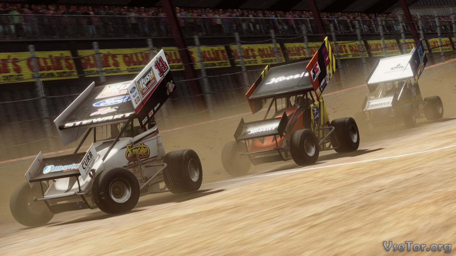 А еще в Tony Stewart's Sprint Car Racing вас ждет несколько режимов игры. Помимо сюжетной кампании, вам ждет одиночная быстрая гонка, а также, режим гонки на разделенном экране и многопользовательские турниры на 25 игроков. В общем, берите крутую тачку, отрабатывайте все свои навыки и попробуйте доказать всем, что вы лучший в своем деле. У нас вы можете скачать Tony Stewart's Sprint Car Racing торрент последнюю версию бесплатно на компьютер.