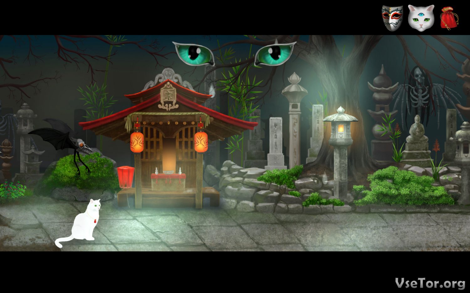 А в остальном Cat and Ghostly Road, это типичный двухмерный квест с видом от третьего лица. Отправляйтесь в путь вместе с белым котом, жаждущим спасти хозяина, и сможете окунуться в мир мистики, легенд и мифов… У нас вы можете скачать Cat and Ghostly Road торрент последнюю версию бесплатно на компьютер.