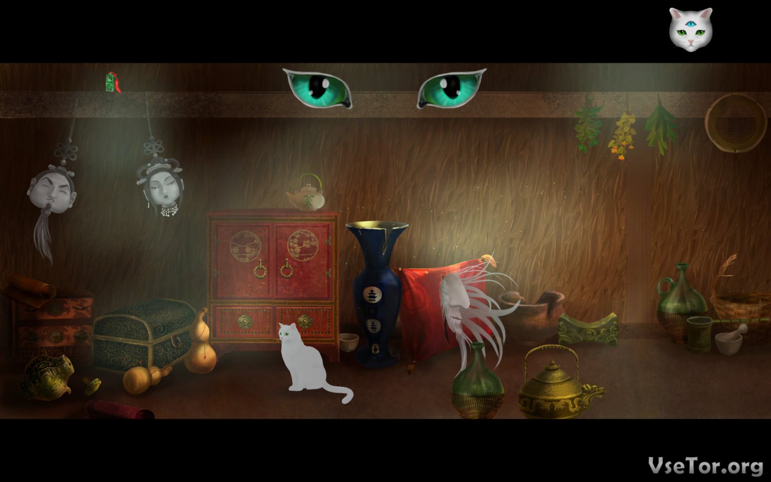Cat and Ghostly Road – это увлекательное и очень атмосферное приключение в жанре «Quest». Вас ждет интригующая история белого необычного кота, море головоломок и загадок, и не только…