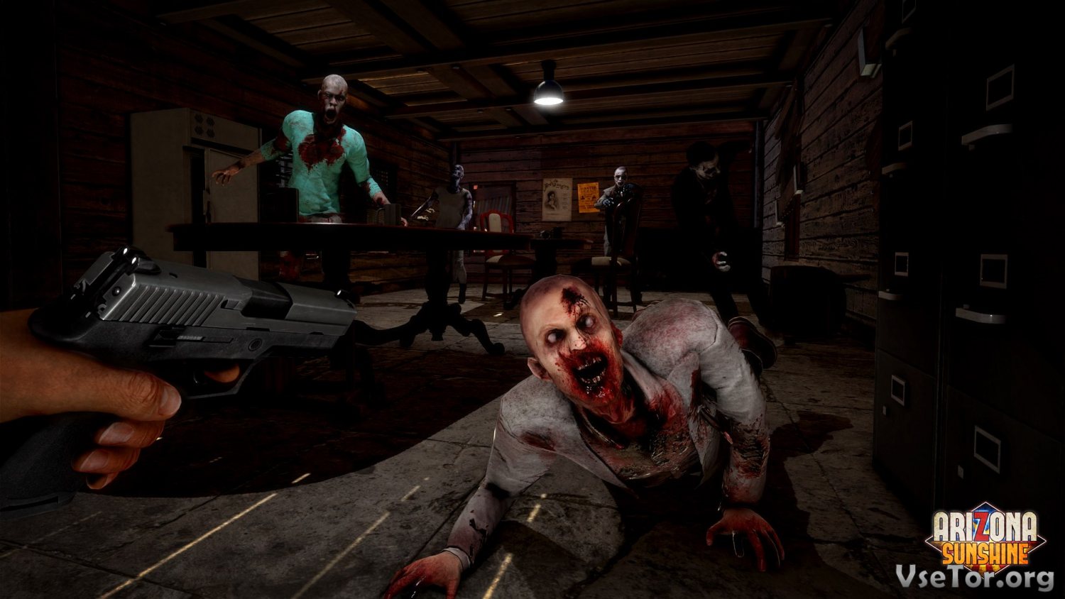 Исследовать же здешний мир – сплошное удовольствие. Здесь можно взаимодействовать со всем, что есть в окружении. Вы можете в Arizona Sunshine взрывать бочки с горючим, обыскивать багажники и салоны легковых автомобилей, забираться в дома и магазины, и делать многое другое. Никто и ничто вас не ограничивает – главное, выживите и спаситесь… У нас вы можете скачать Arizona Sunshine (VR) торрент последнюю версию бесплатно на компьютер.