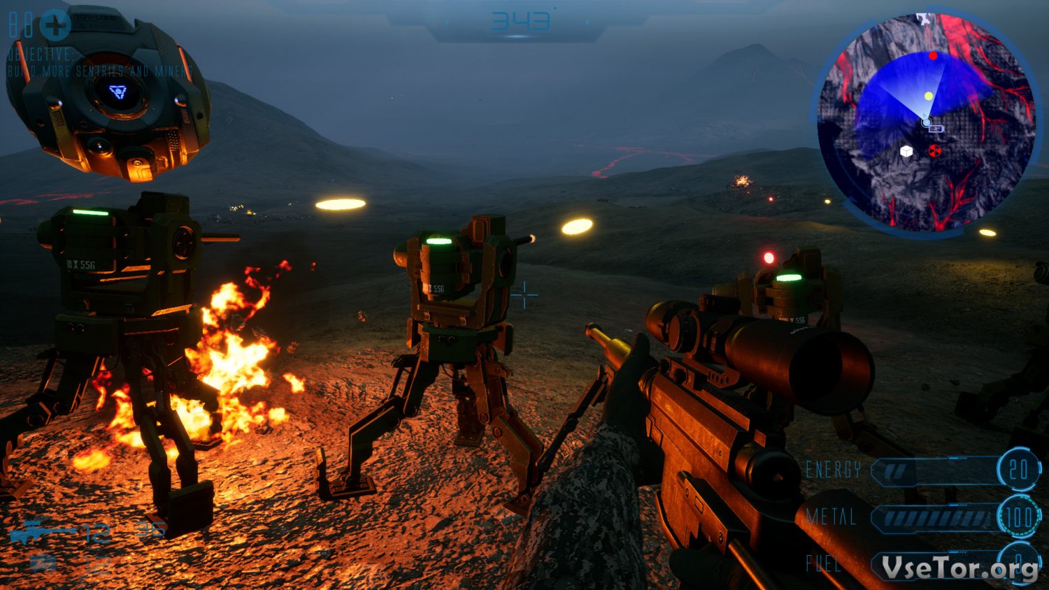 Что касается игрового процесса, так он здесь довольно прост и основывается на простейших механиках. Хотя, при всей простоте механик, играть все равно интересно. В ходе прохождения игры вы каждый новый день будете высаживаться в новых секторах планеты, и добывать там ресурсы, которые играют роль топлива. Ваша задача – обороняться до тех пор, пока не будет добыто достаточное количество ресурсов. Ну а в ходе обороны вы должны будете в режиме вида от первого лица отбивать атаки роботов, расставлять оборонительные устройства и пулеметы, и всячески убивать нападающих роботов.