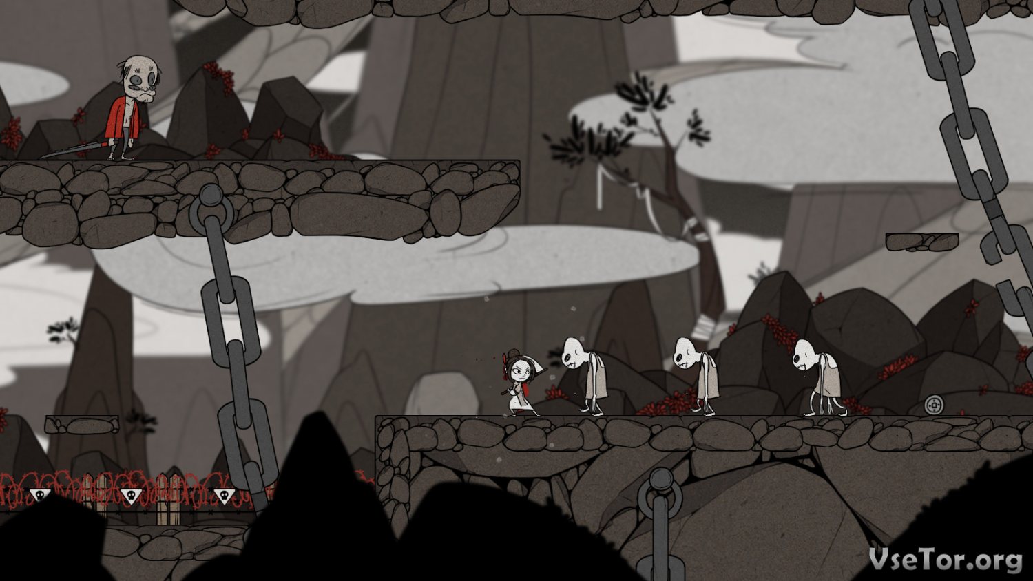 И первым делом стоит отметить атмосферу игры. Разработчики создали действительно красивую игру при том, что использовали минимум красок. Темные локации с примесью черно-белого оформления окружения в целом, кровожадные призраки и духи, необычное окружение, странные враги, выглядящие порою слишком уж мрачно – все это создает действительно ошеломляющую атмосферу. Но это не главное…