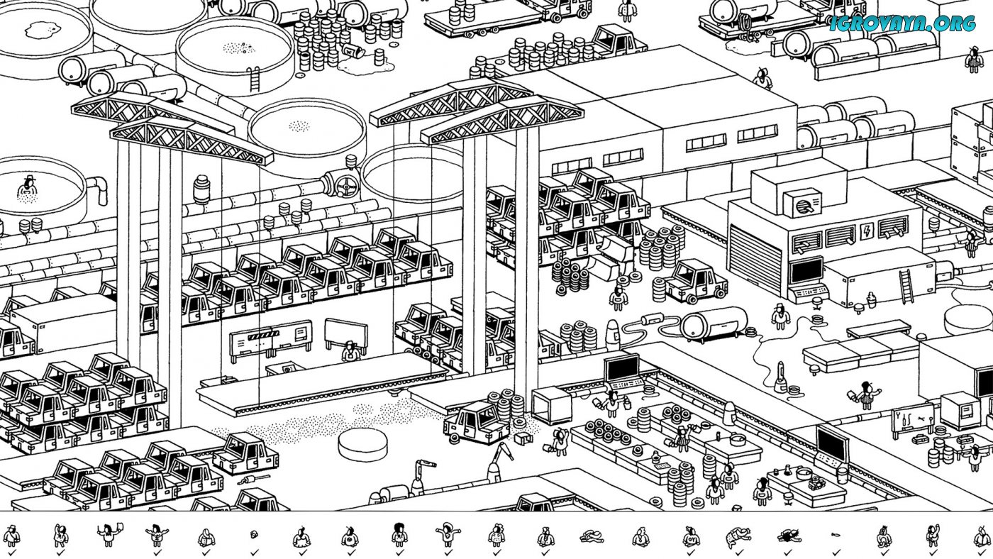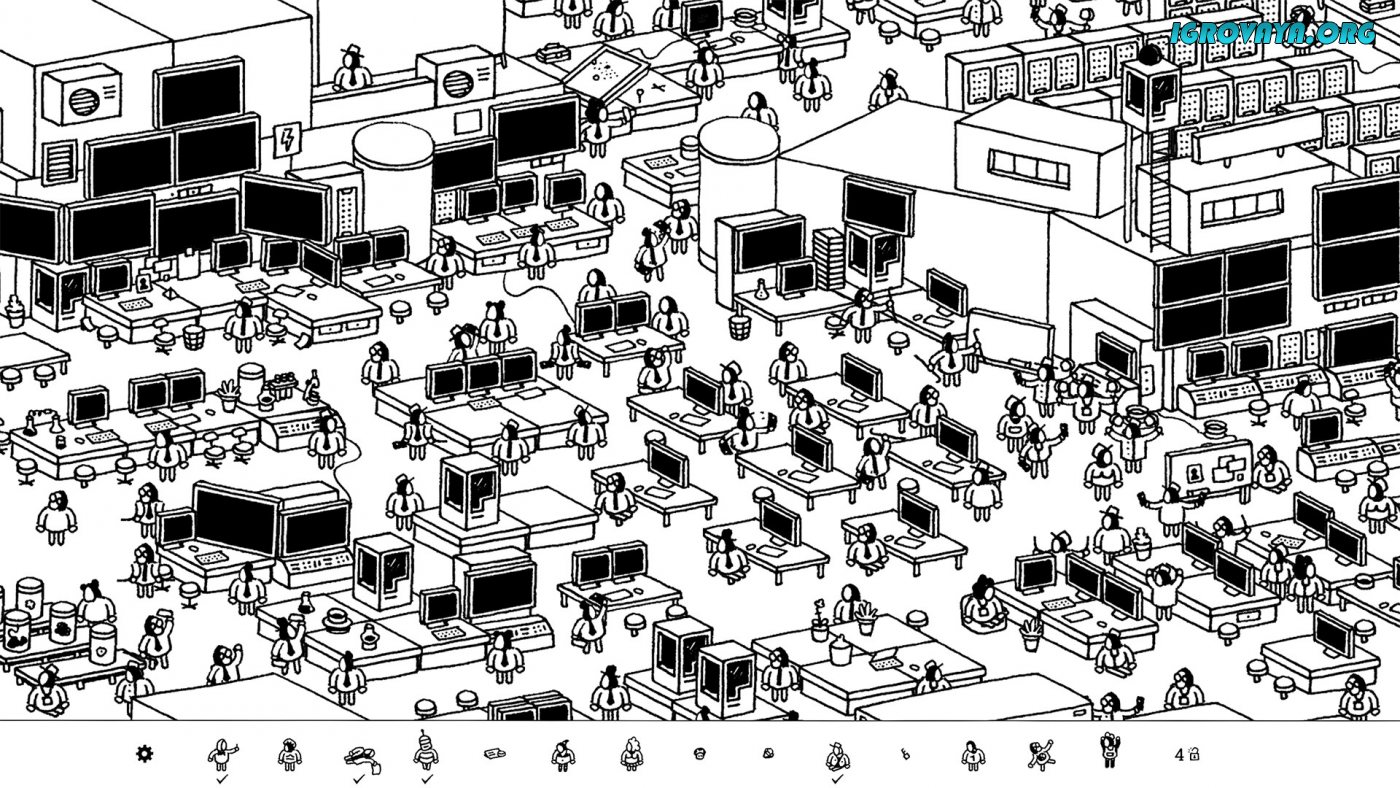Уровней в Hidden Folks более, чем предостаточно. Вас ждет более двух десятков карт, на каждой из которых вас будут ждать самые разные сеттинги, обстановки и пейзажи. например, это могут быть джунгли, обычный город, переполненный одинаковыми домами и людьми, производственное помещение с кучей компьютером и одинаковых клерков, лес, ферма и многое другое. Поверьте, на этих картах найти нужные предметы и нужных людей не так уж и легко.