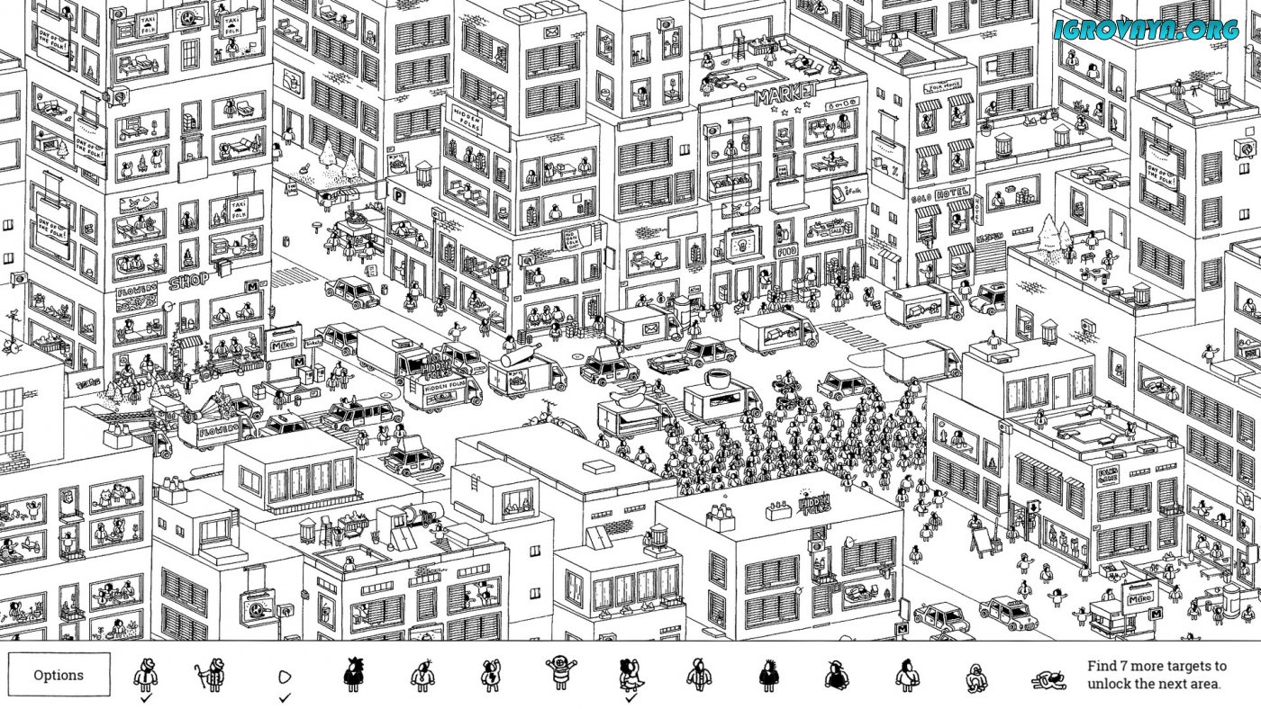 Hidden Folks – казуальная инди-игра в жанре «поиск предметов», в которой вам нужно будет искать на различных нарисованных от руки картах различные предметы и даже человечков.