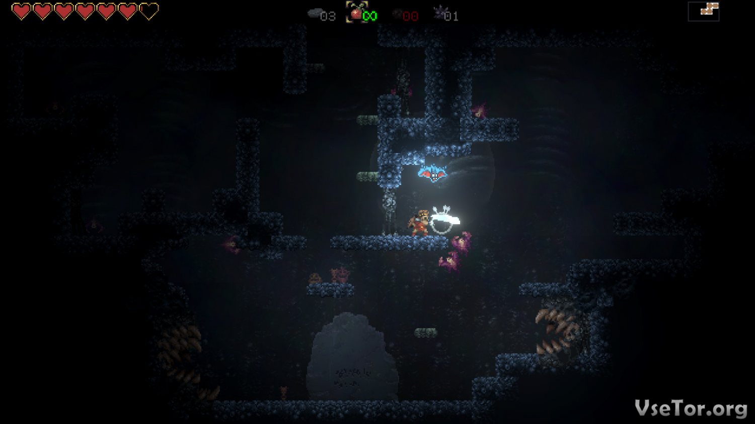 Попутно же, проходя многочисленные локации, вы сможете обзавестись еще и могущественными спутниками. Например, с вами по пещерам будет бегать маг, способный убивать врагов энергетическими разрядами. Да и летучая мышь будет помогать, давая разные ауры, освещая путь, и просто указывая на решения головоломок.