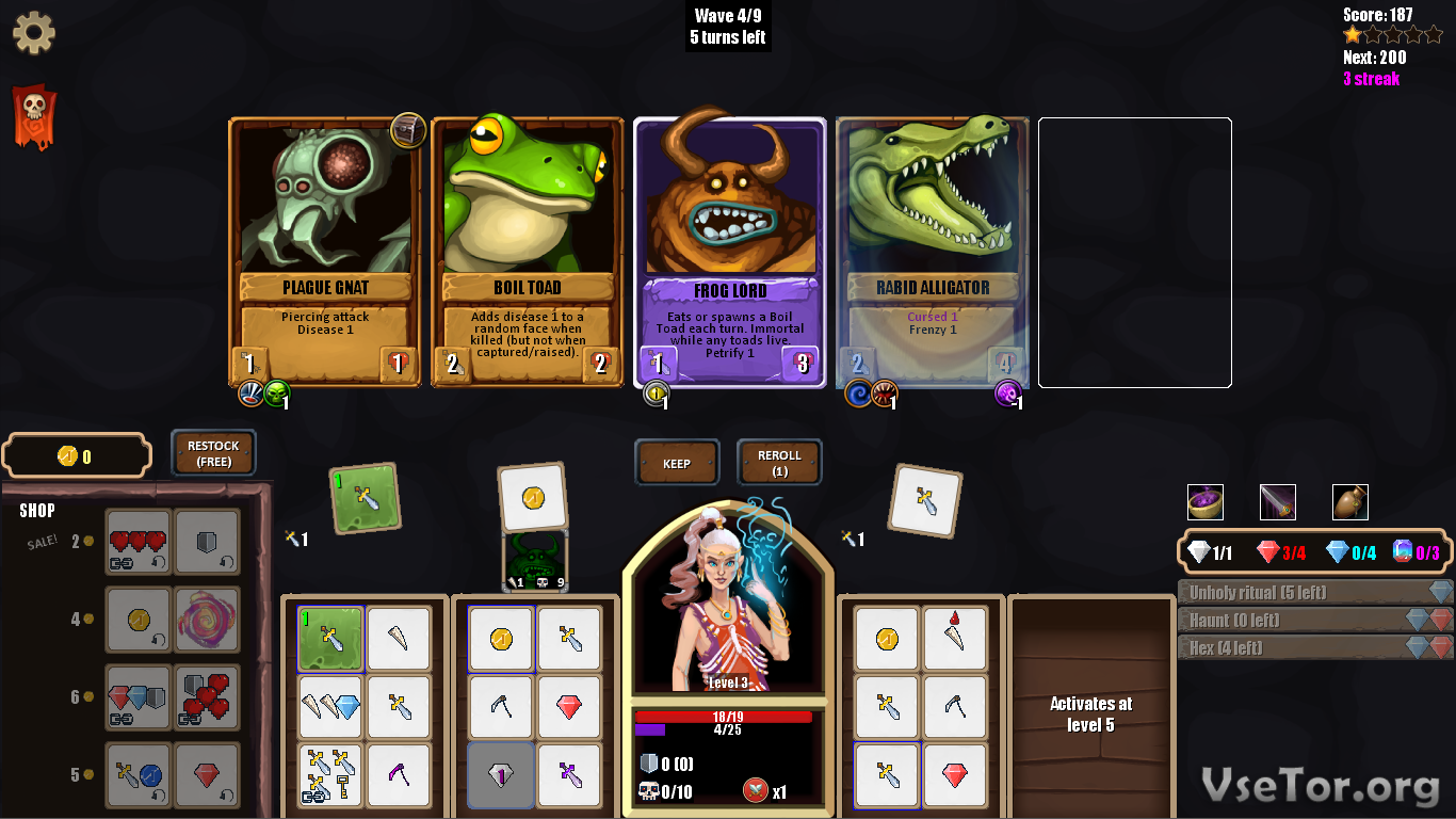 Перед вами на экране будут лишь изображены ваши герои и противники, изображенные на картах, кости, которые вам придется кидать и коллекционировать, и несколько важных характеристик. Вся игра представляет собою бесконечный цикл сражений, череду, которую вы должны всеми возможными способами пережить. Вот только сделать это будет не так уж и просто.