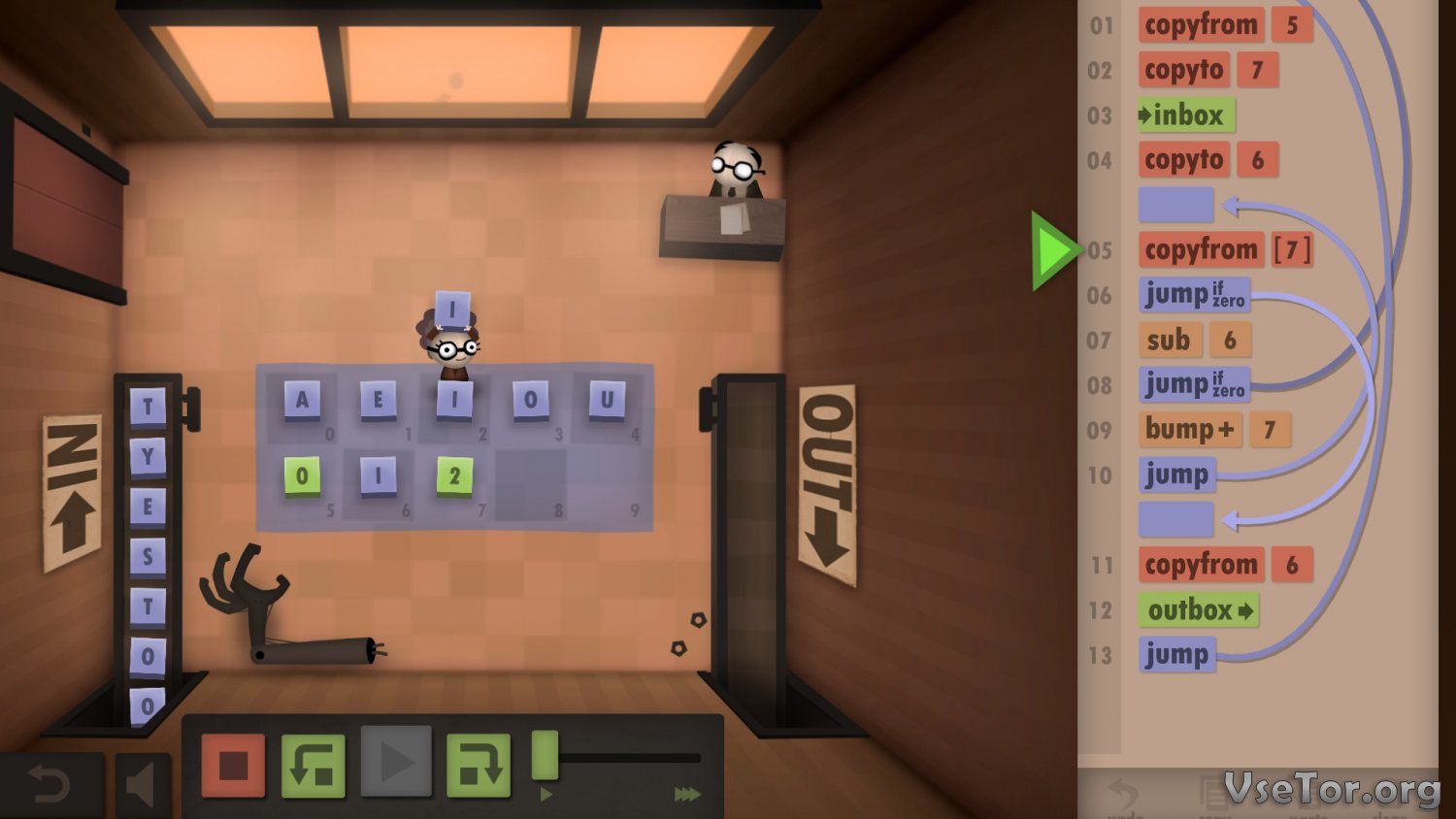 На словах в Human Resource Machine вроде бы все просто, но на деле это не так. Во-первых, нужно изначально определить алгоритм действий, что не так уж и просто. Это может быть расстановка на конвейер коробок в определенном порядке, к примеру. А возможно, для вычисления алгоритма придется еще и посчитать. Во-вторых, нужно подстроить действий под вычисленный алгоритм. Причем, учесть придется все до мелочей каждую команду. Вам придется решить, когда персонажу взять коробку, куда ее отнести, что с ней сделать, и куда подойти, а затем еще и скопировать действия для продолжения. В общем, играть действительно интересно, но придется изрядно «раскинуть» мозгами… У нас вы можете скачать Human Resource Machine торрент последнюю версию бесплатно на компьютер.