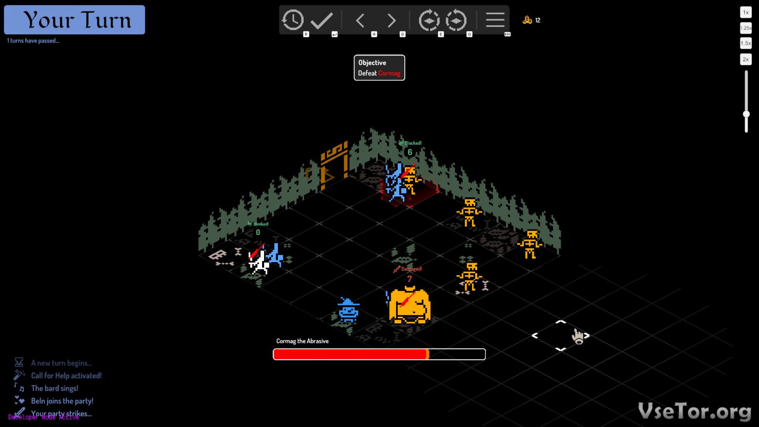 Что касается игрового процесса, так он в этой игре довольно прост. Есть одна большая глобальная карта, по которой вы в роли барда как раз-таки и будете путешествовать. Вам же предстоит управлять бардом и героями, находящимися под его управлением, сражаться в пошаговых битвах с разными противниками, выполнять задания, и двигаться понемногу вперед к цели. Ничего сложного, но при этом, сами сражения достаточно сложны. дело в том, что здесь всего лишь один неверный шаг может привести к поражению. А ведь смерть барда в The Song of the Fae перманентна. Вам придется научиться как полагается использовать особенности ваших героев, совершать маневры, используя пустые клетки на карте, прокачиваться, и не только.