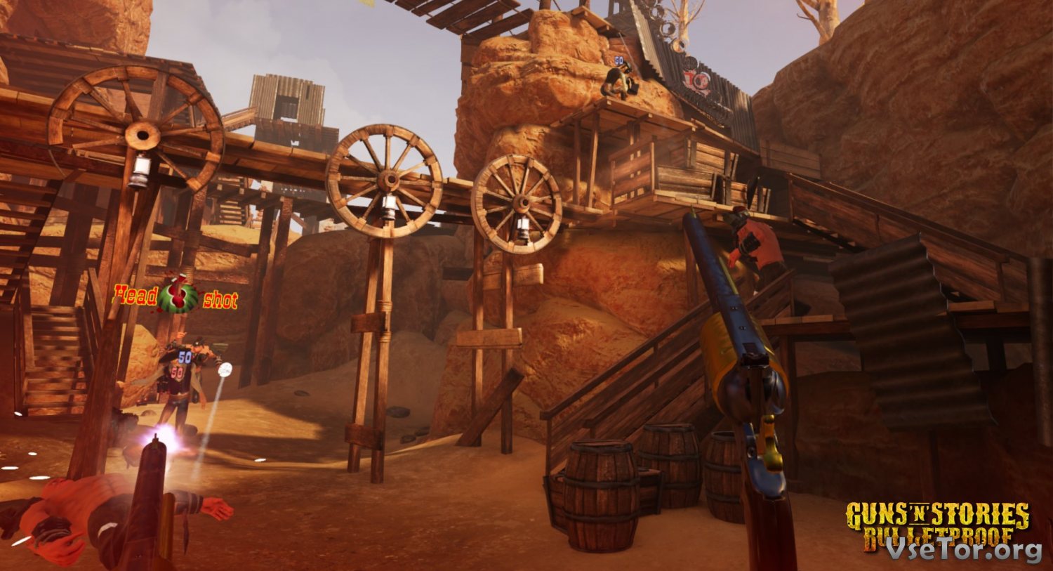 Guns'n'Stories: Bulletproof VR – это крутой экшен с видом от первого лица, выполненный в стиле ковбойского тира. Вас ждет переполненный врагами Дикий Запад, зрелищные бои, стрельба и взрывы, и многое другое…