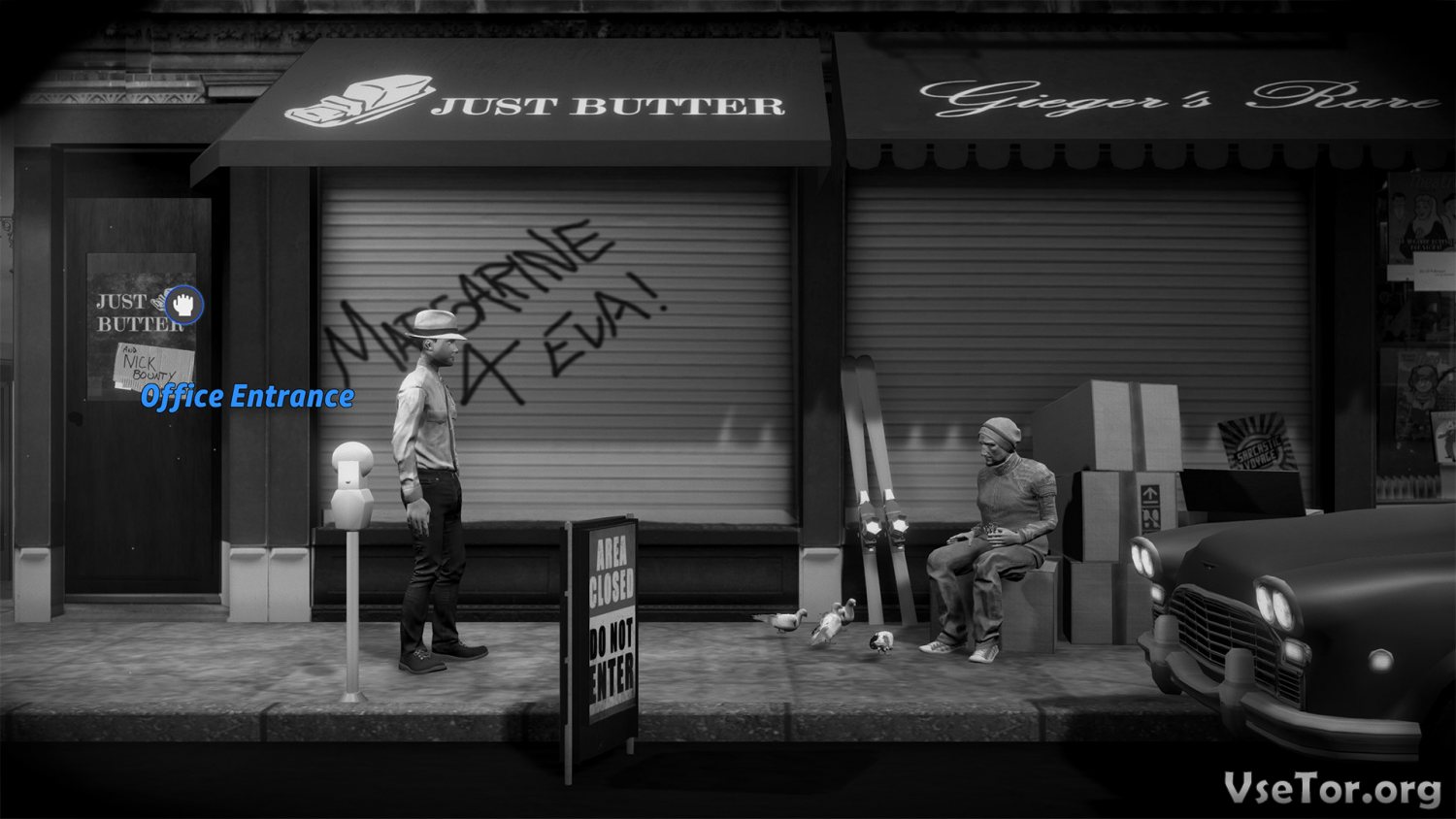 Ну а первым делом стоило бы сказать об атмосфере игры. В Nick Bounty and the Dame with the Blue Chewed Shoe вас ждет действительно крутая атмосфера. Интригующая сюжетная линия, море загадок и головоломок, продуманные диалоги с разными персонажами, из которых можно почерпнуть много полезной информации, нуарный стиль оформления локаций – все это создает просто непередаваемую атмосферу.
