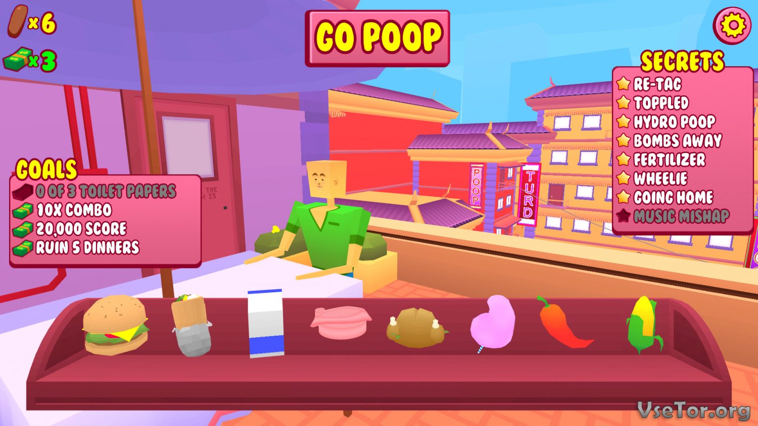 А еще теперь в Muddy Heights 2появилась шкала времени, которой определяется, сколько время после запуска «снарядом» можно управлять. Да-да, теперь «какаха» не просто упадет, но еще может и прыгать, естественно, будучи под вашим управлением. В общем, веселье теперь будет еще больше. Кидайте «какашки» в прохожих, устройте хаос на вечеринке, погрузите парк аттракционов в Ад и просто веселитесь… У нас вы можете скачать Muddy Heights 2 торрент последнюю версию бесплатно на компьютер.