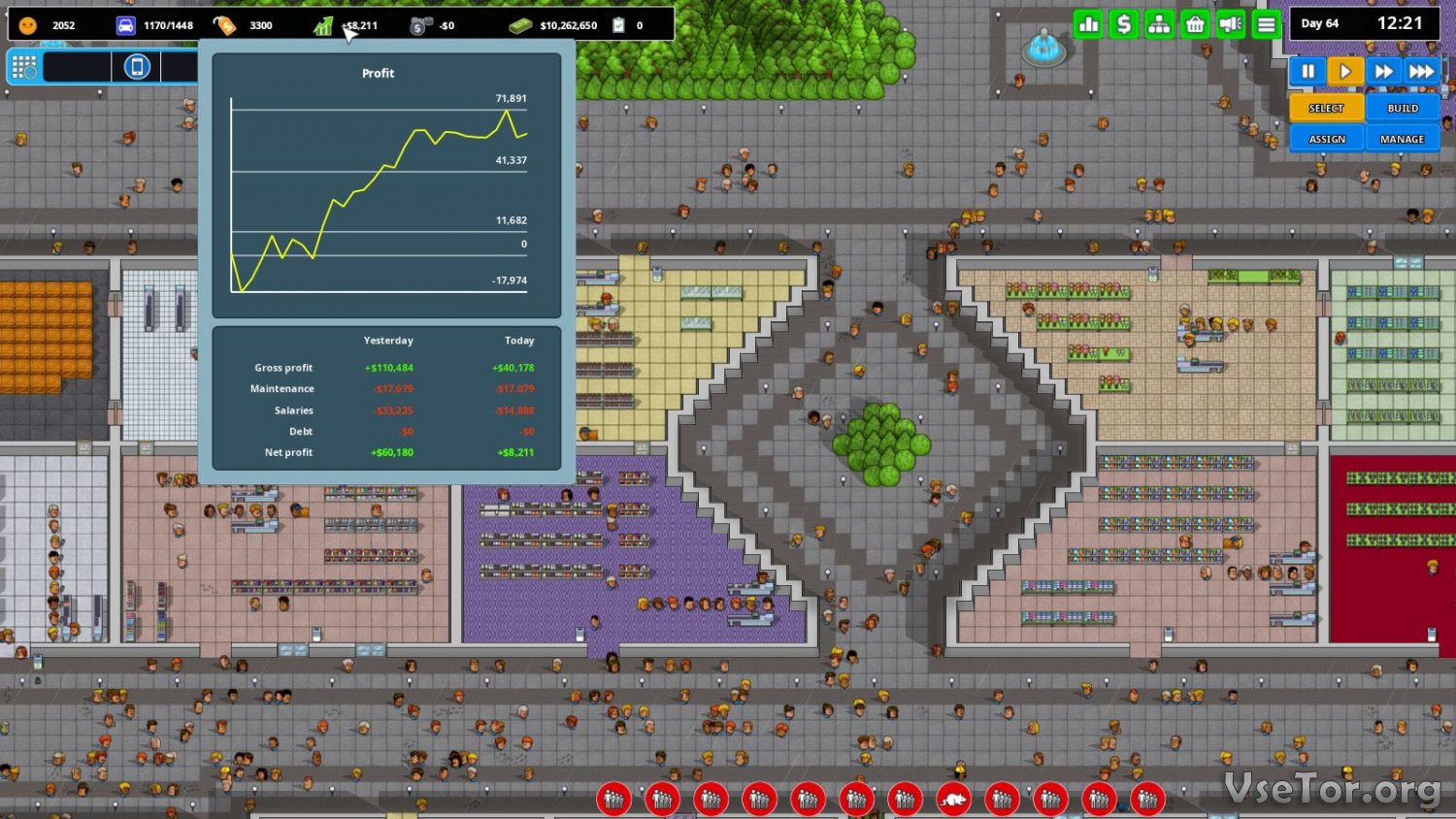 Вы отвечаете тут за все аспекты работы вашего торгового центра. Даже мытье полов и пропускная способность дверных проемов, и то, зависят от вас. Что-то вы можете делать сами, а на что-то у вас попросту будет не хватать времени. Что будете делать? Разорветесь на части, или наймете рабочих?