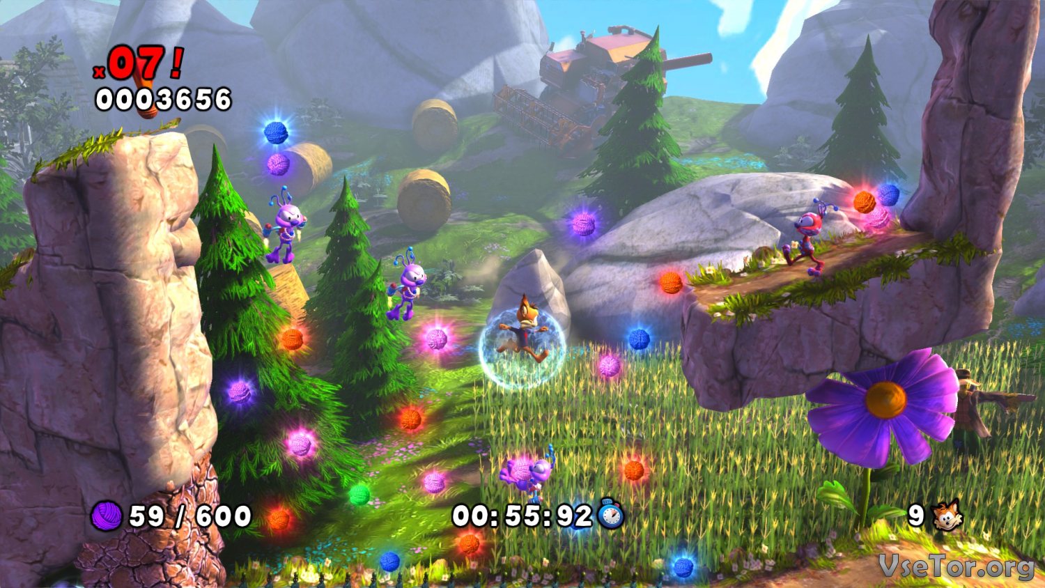 Ну а в первую очередь стоило бы обратить внимание на то, что Bubsy: The Woolies Strike Back разработчики осовременили и сделали уже более современным платформером. Вас ждет красочная графика, море спецэффектов, красивая анимация, высокие разрешения, и действительно красивое визуальное оформление игры. Плюс, атмосферности игре добавляет широкое разнообразие локаций. Здесь вас ждут и бесконечные зеленые равнины, и леса, и пустынные локации в стиле Дикого Запада, и подводные пещеры, и многое-многое другое.