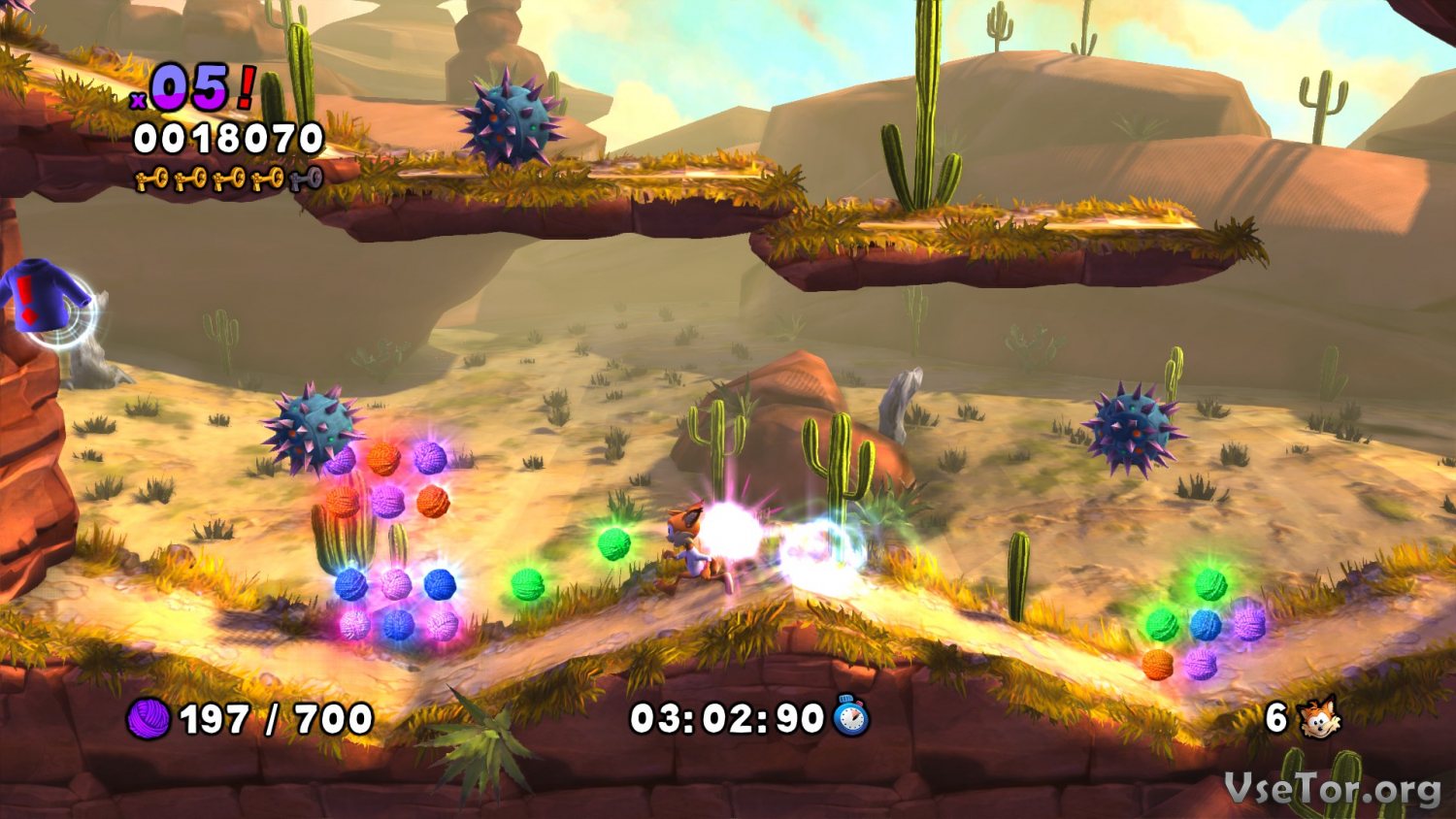 А в остальном это все тот же двухмерный платформер. Отправляйтесь вместе с Бабси в погоню за похитителями, сразитесь с их инопланетными тарелками, преодолейте все преграды, убегайте от акул в подземных пещерах и мчитесь вперед, что есть сил… У нас вы можете скачать Bubsy: The Woolies Strike Back торрент последнюю версию бесплатно на компьютер.