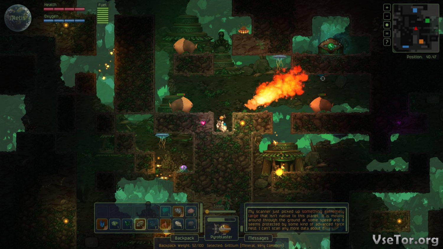 Что же до игрового процесса, так он в Something Ate My Alien довольно прост и предлагает по большей части исследование огромных просторов подземных миров далеких планет. Вам придется спускаться в недра планет, исследовать подземелья, копать проходы и тоннели, сражаться с монстрами и другими обитателями этих планет, искать сокровища и ресурсы, и выполнять многочисленные попутные задания. В общем, отправляйтесь в путь и постарайтесь не оплошать. Но будьте осторожны – планеты обитаемы и их жители не пожелают вам отдавать свои ресурсы просто так. У нас вы можете скачать Something Ate My Alien торрент последнюю версию бесплатно на компьютер.