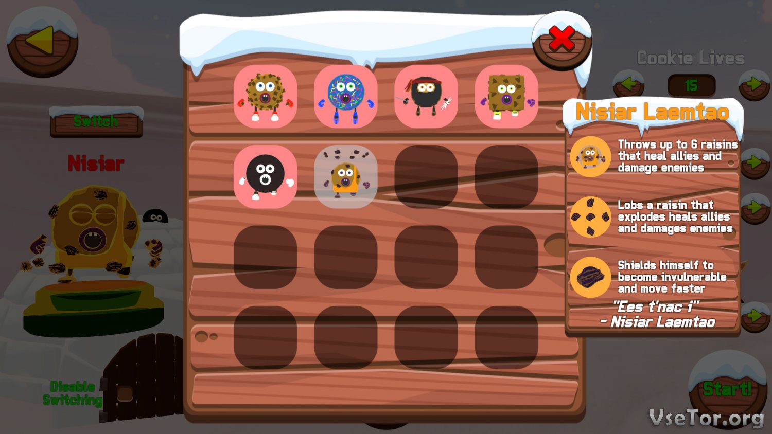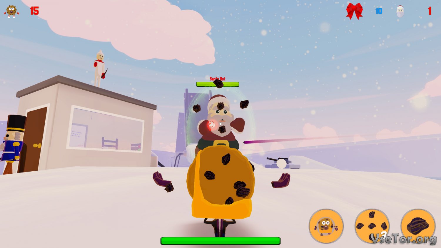 Что касается самих сражений, так они могут происходить на трех разных картах, а в будущем разработчики и вовсе обещают добавить еще как минимум несколько карт и режимов. Плюс, в будущем должно появиться и больше доступных персонажей. У нас вы можете скачать Cookies vs. Claus торрент последнюю версию бесплатно на компьютер.