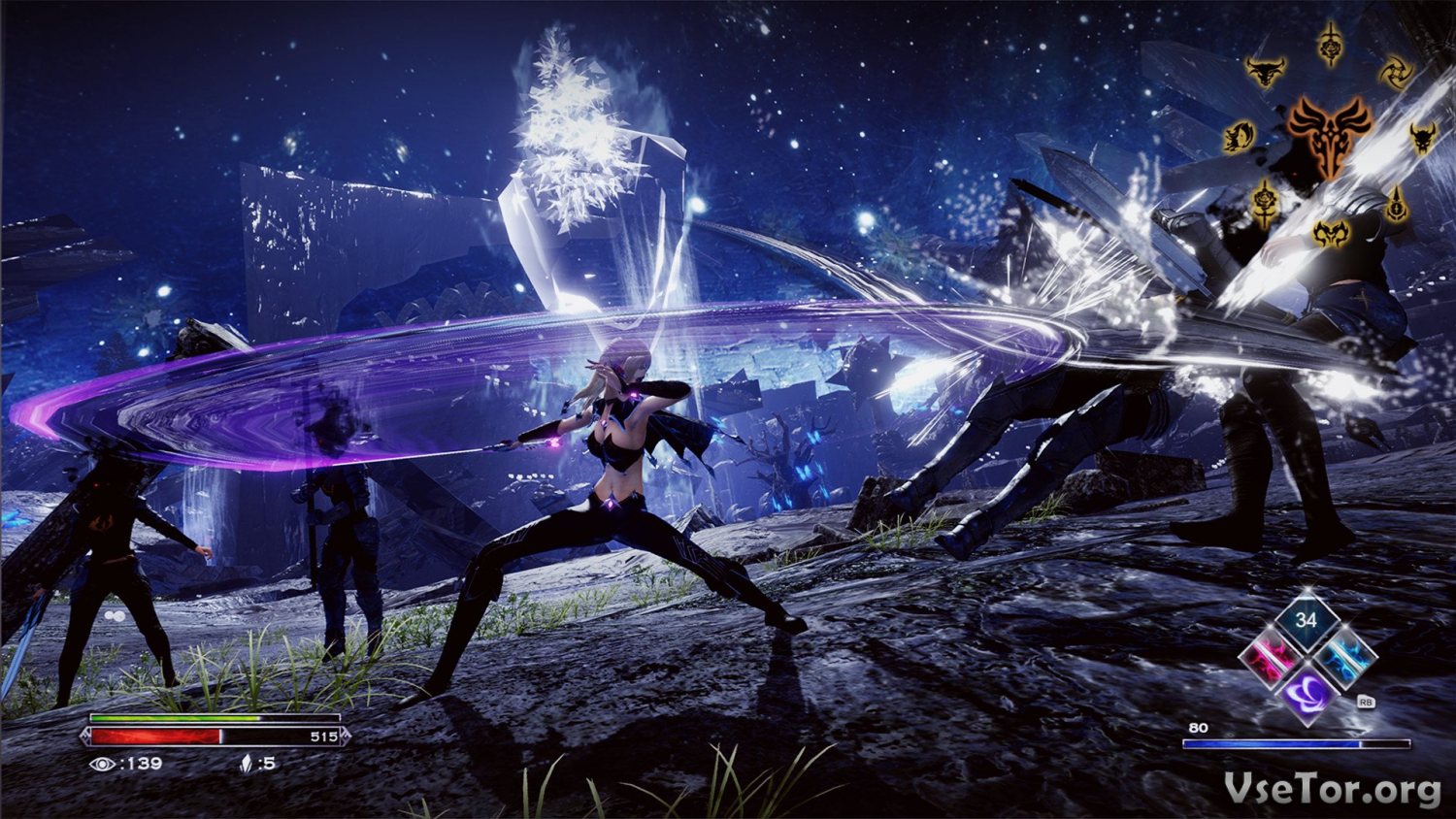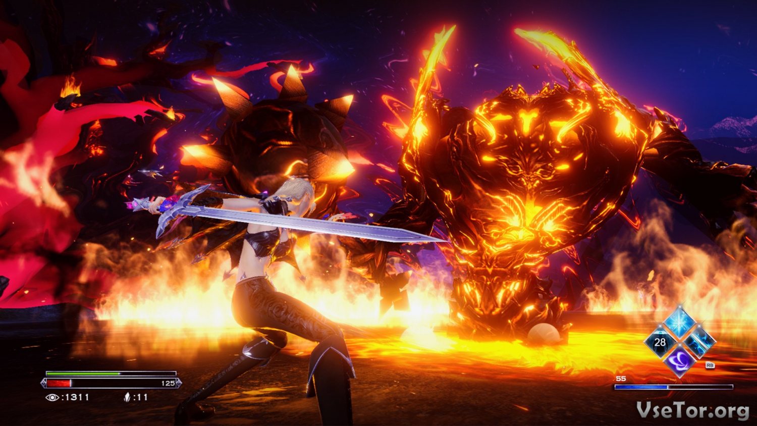 Атмосфера тут, к слову, просто непередаваемая. Мрачные темные локации, падающие со скал горящие булыжники, вредящие как противникам, так и главное героине, жуткие кровожадные боссы, каждый из которых требует особого подхода, сражение, переполненные кровью и магией – все это создает действительно крутую атмосферу, сражаться в которой, сплошное удовольствие.