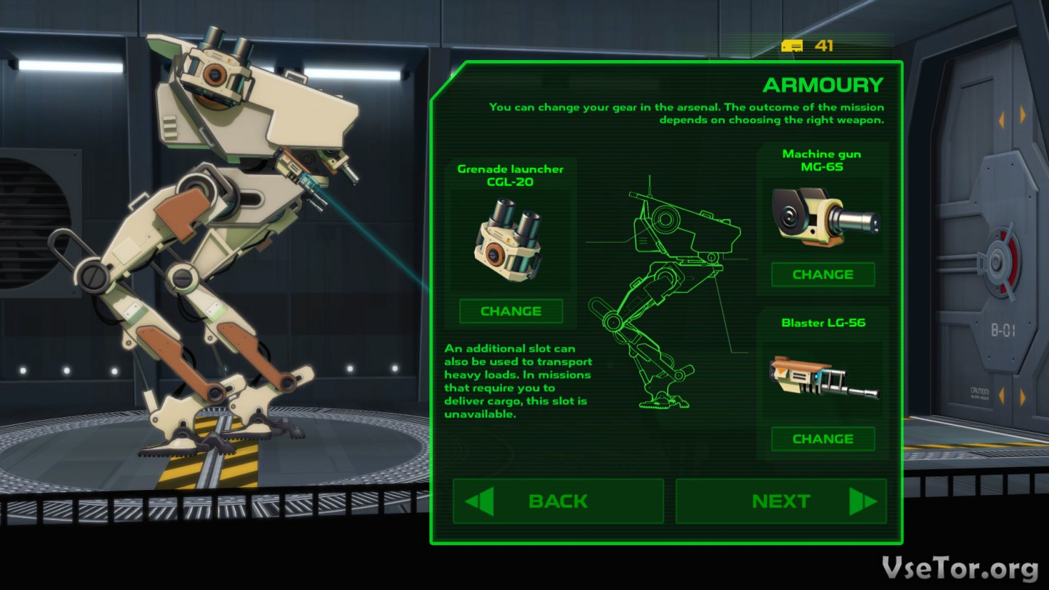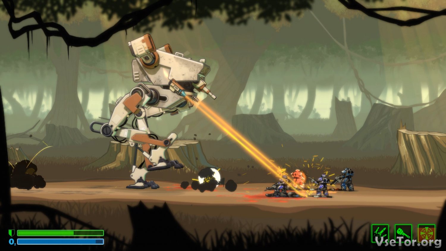 Игровой же процесс тут довольно прост и основывается на простейших механиках. Вы будете проходить многочисленные уровни, сражаться с врагами, прокачивать своего боевого меха, выполнять задания и делать многое другое. В общем-то, ничего сложного, по крайней мере, на первый взгляд. Но есть тут и несколько необычных механик. Например, есть такая особенность, как отдельное управление каждой ногой меха. Да-да, вы будете управлять каждой его ногой по-отдельности. Вам придется контролировать каждую ногу меха и четко планировать свои шаги. Один неверный шаг, и вы, либо взорветесь, либо пропустите врага за спину.