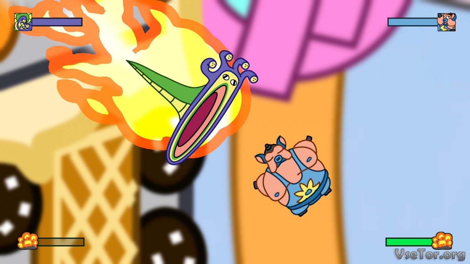 Персонажей в Fly Punch Boom! более, чем предостаточно, и каждый из них по-своему уникален. У всех персонажей имеются свои отличительные особенности, особые атаки, и добивающие приемы. А еще вас ждет как минимум несколько разных режимов, включая кооперативный, разнообразные финишеры, и даже уровни. Сражайтесь с врагами прямо в небе, крушите все вокруг, ломайте планету пополам и отправляйте врагов в пасть акуле, и просто наслаждайтесь самыми безумными боями в истории файтинга. У нас вы можете скачать Fly Punch Boom! торрент последнюю версию бесплатно на компьютер.
