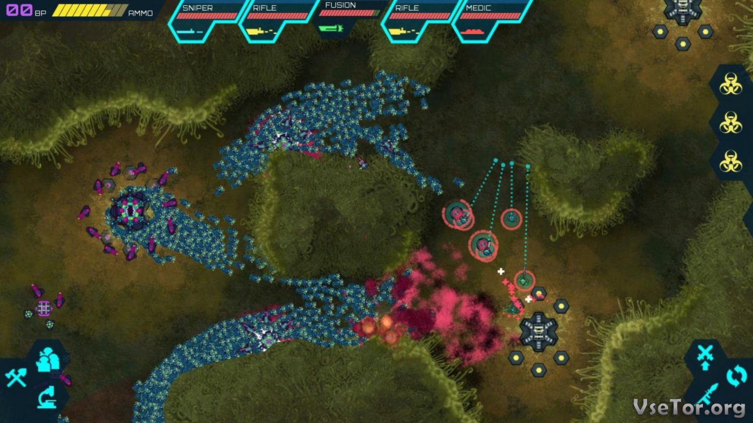 Конечно, вы тоже сможете развивать своих солдат. В Infested Planet в вашем распоряжении будет более двух десятков разновидностей зданий и человеческих вооружений. Используйте то, что посчитаете наиболее эффективным, вооружайте солдат мощными пушками, снаряжайте их новой амуницией и бейтесь за базу и все человечество с тысячами пришельцев в неравных боях. У нас вы можете скачать Infested Planet торрент последнюю версию бесплатно на компьютер.